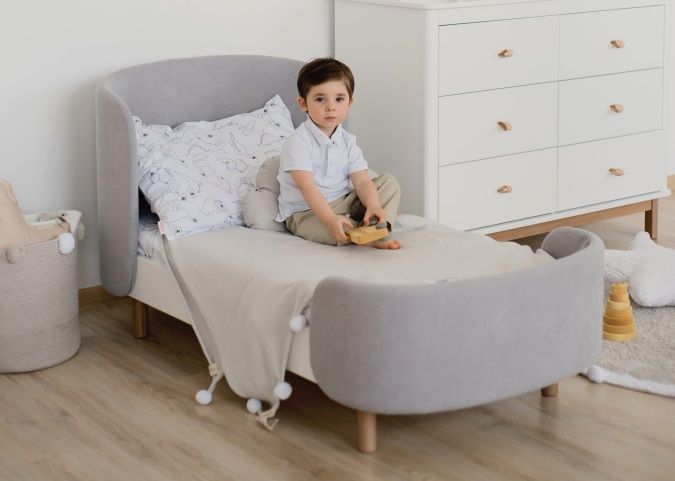 Закруглённые углы и мягкая приятная на ощупь обивка делают кроватку уютной и безопасной