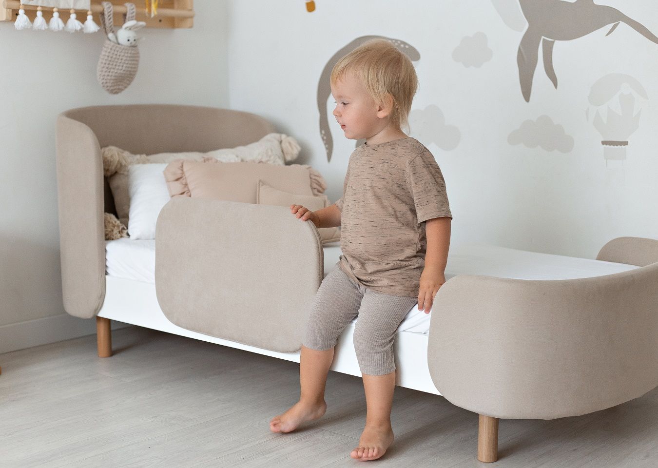 Закруглённые углы и мягкая приятная на ощупь обивка делают кроватку уютной и безопасной