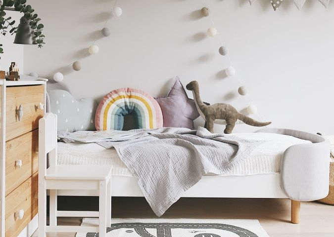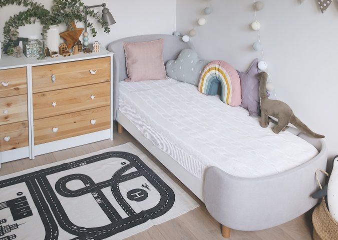 Закруглённые углы и мягкая приятная на ощупь обивка делают кроватку уютной и безопасной