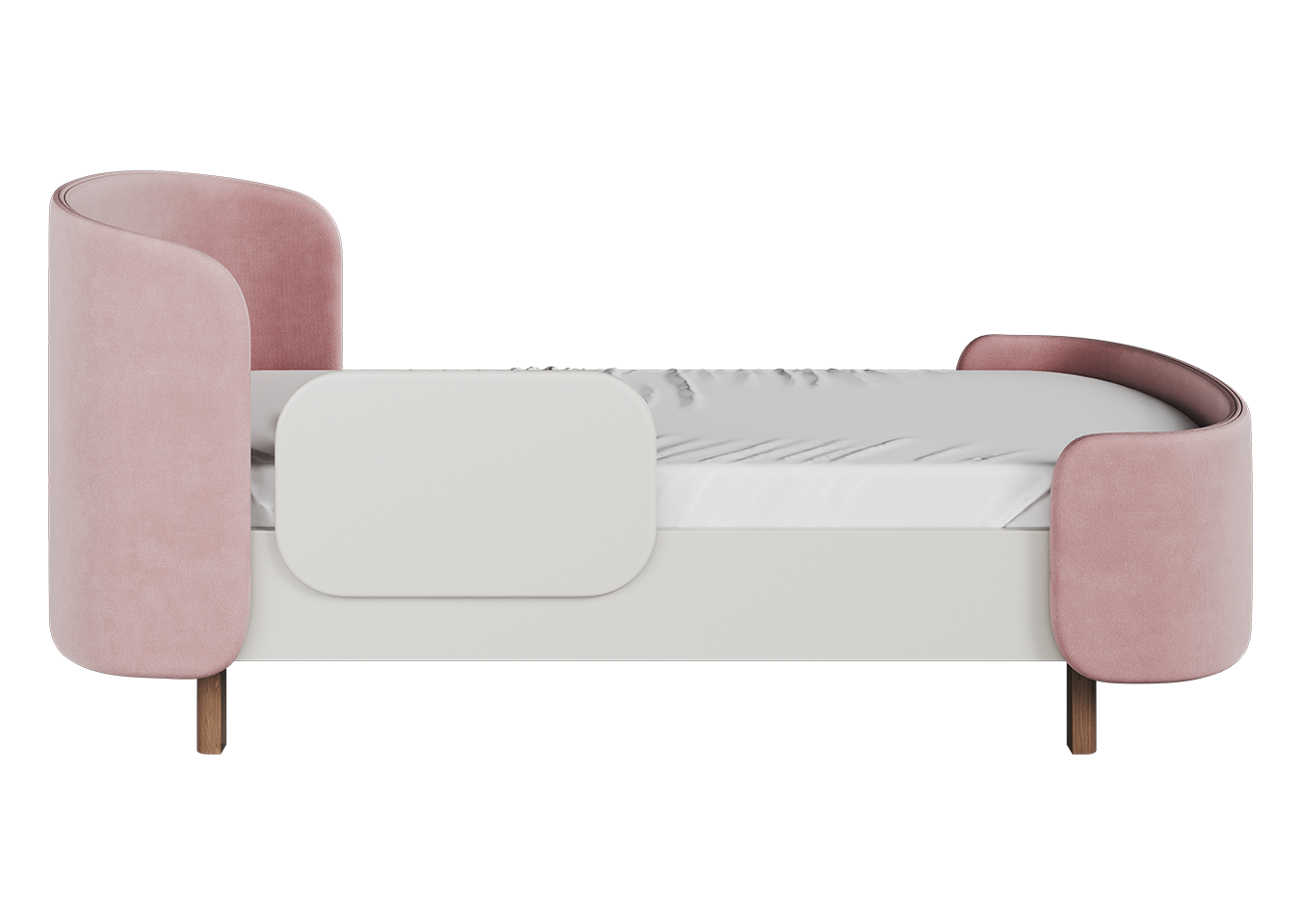 Закруглённые углы и мягкая приятная на ощупь обивка делают кровать уютной и безопасной.