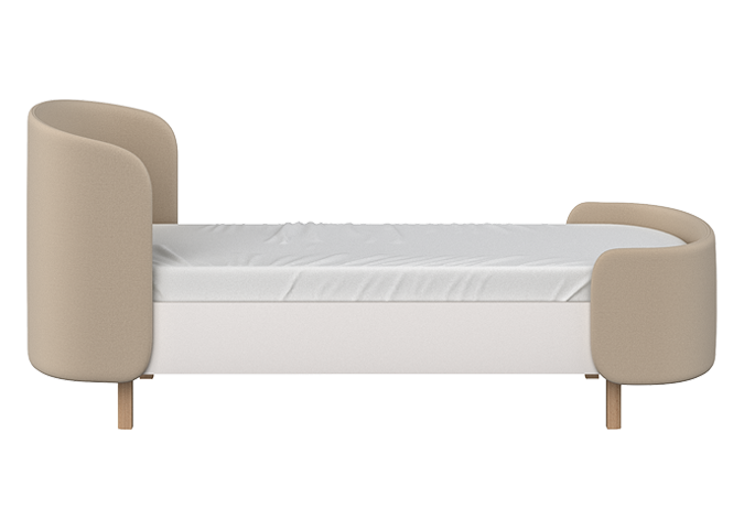 Закруглённые углы и мягкая приятная на ощупь обивка делают кровать уютной и безопасной.
