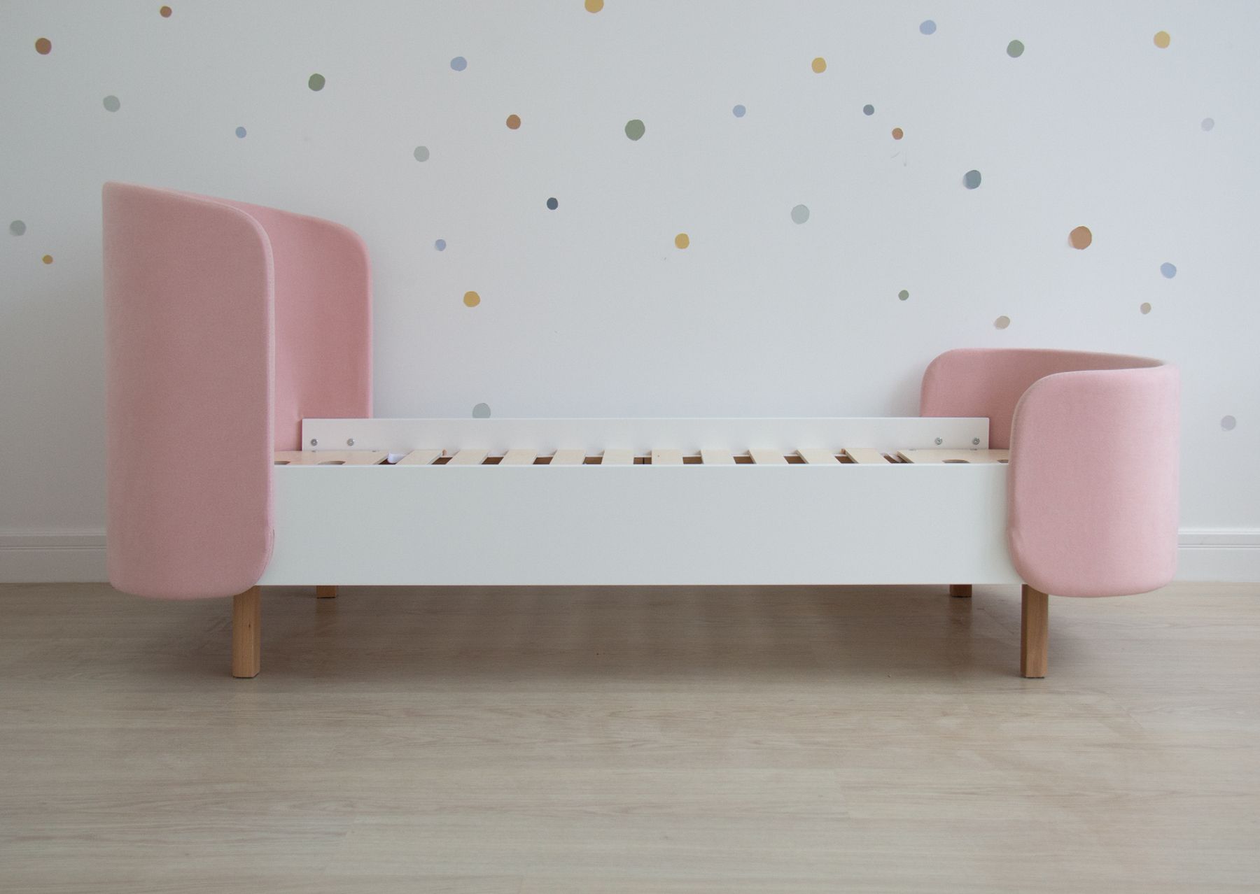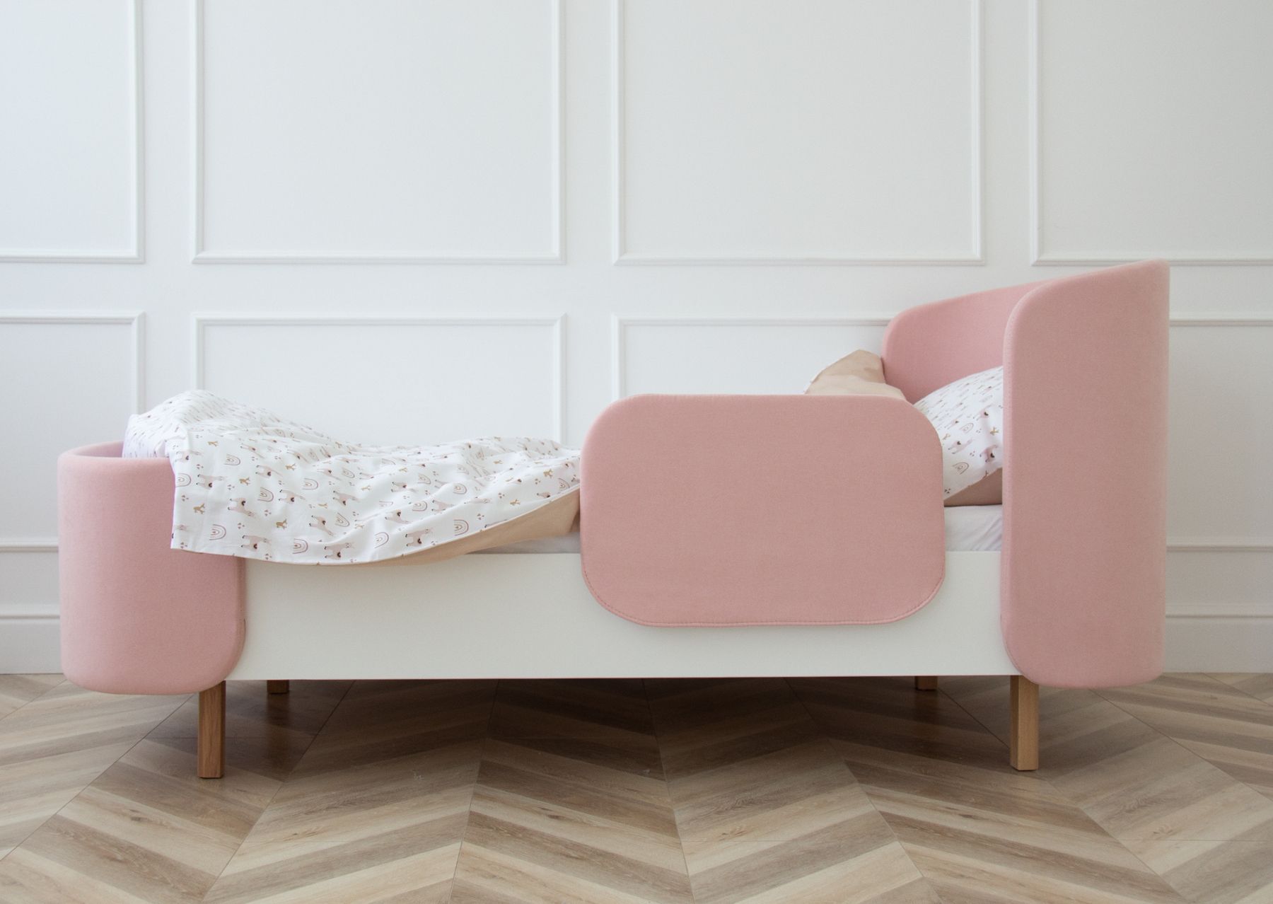 Закруглённые углы и мягкая приятная на ощупь обивка делают кровать уютной и безопасной.