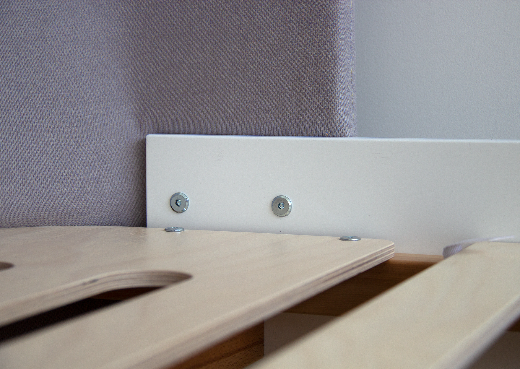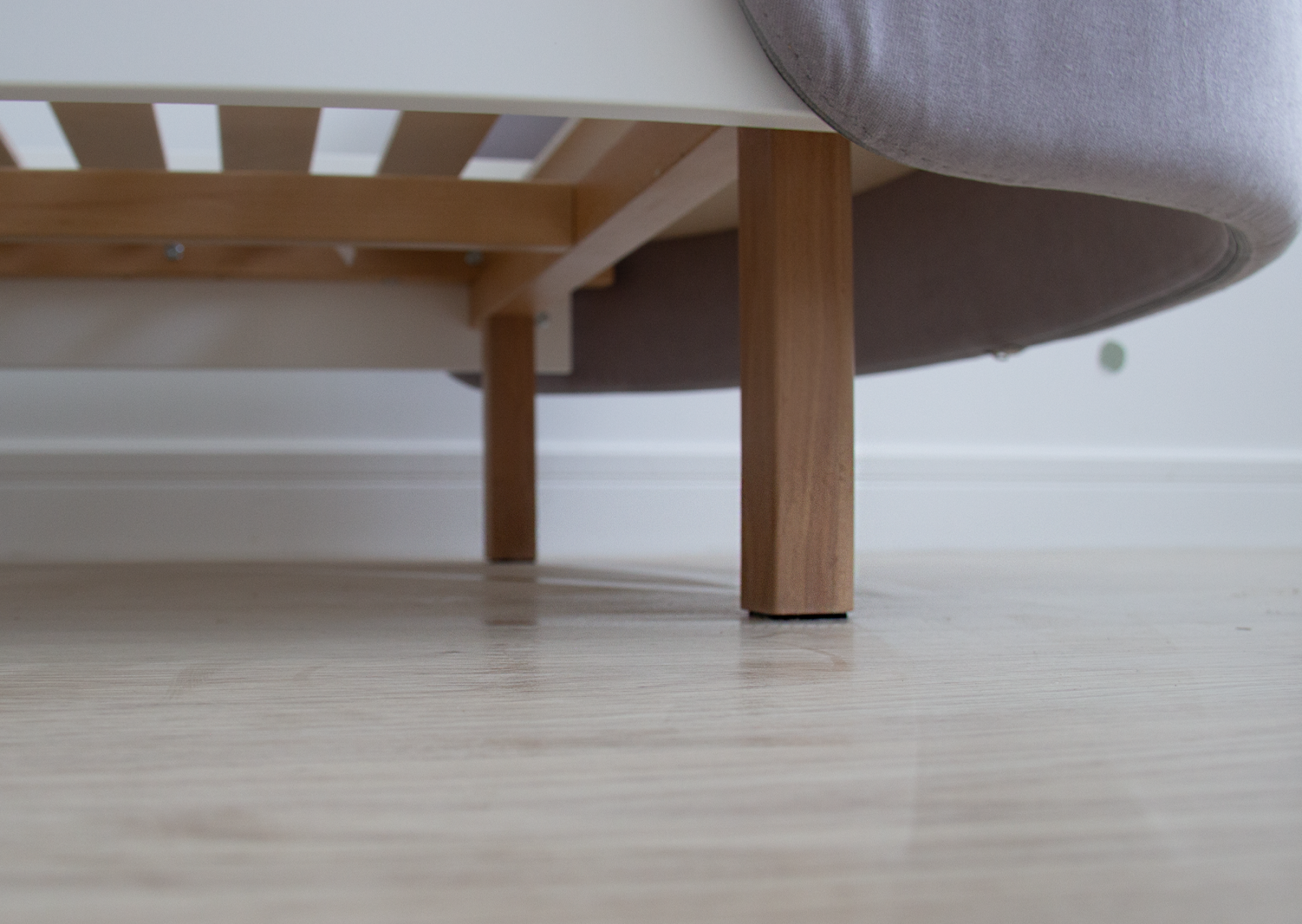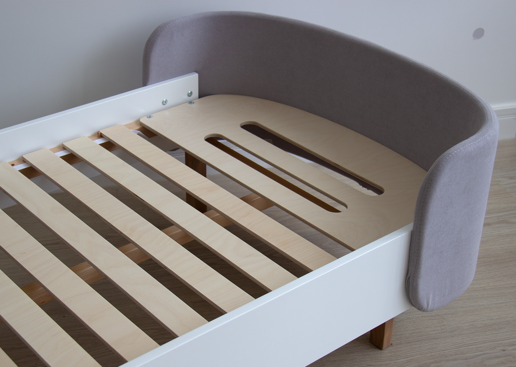 Закруглённые углы и мягкая приятная на ощупь обивка делают кровать уютной и безопасной.