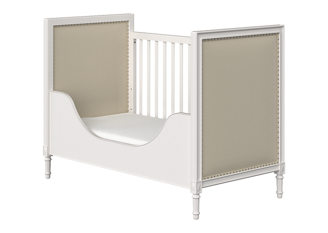Для предотвращения падения во сне, кроватку можно дополнить изящным защитным бортиком.