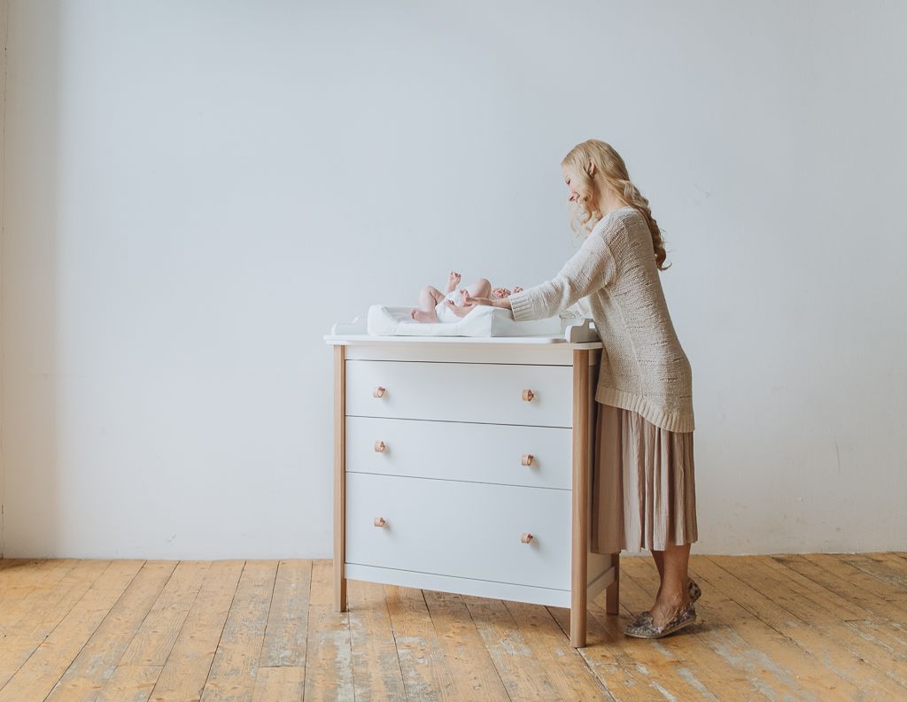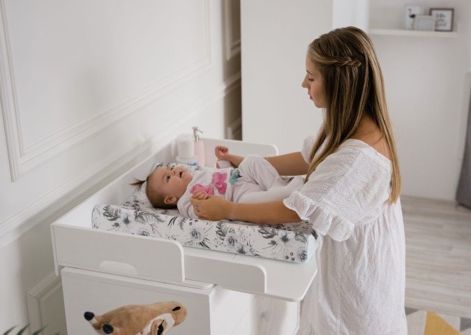 Обладает специальными креплениями, которые предотвращают скольжение по поверхности комода и делают процедуру пеленания максимально безопасной.