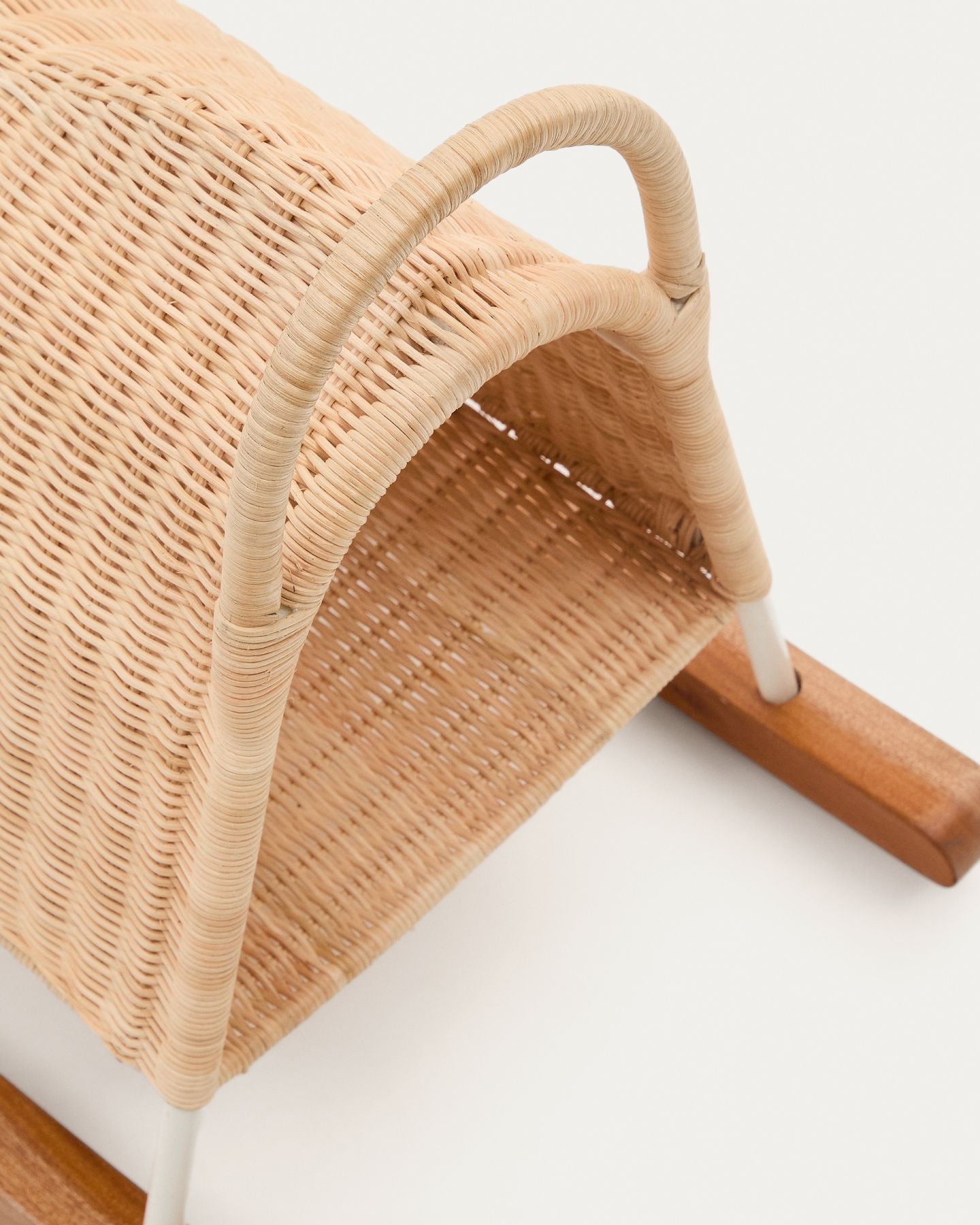 Откройте для себя магию Бамбана, товарища по играм, который приглашает мечтать. Изготовленная из ротанга и дерева, эта лошадка-качалка развивает воображение и равновесие малышей. Сделайте ее частью их лучших воспоминаний.