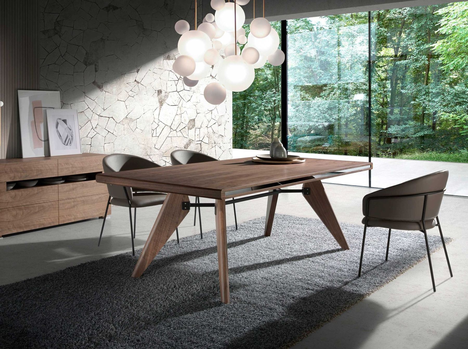 Этот обеденный стол добавит современный штрих любому типу гостиной или столовой. Благодаря оригинальной столешнице из орехового дерева вы создадите теплую, уютную и стильную атмосферу.