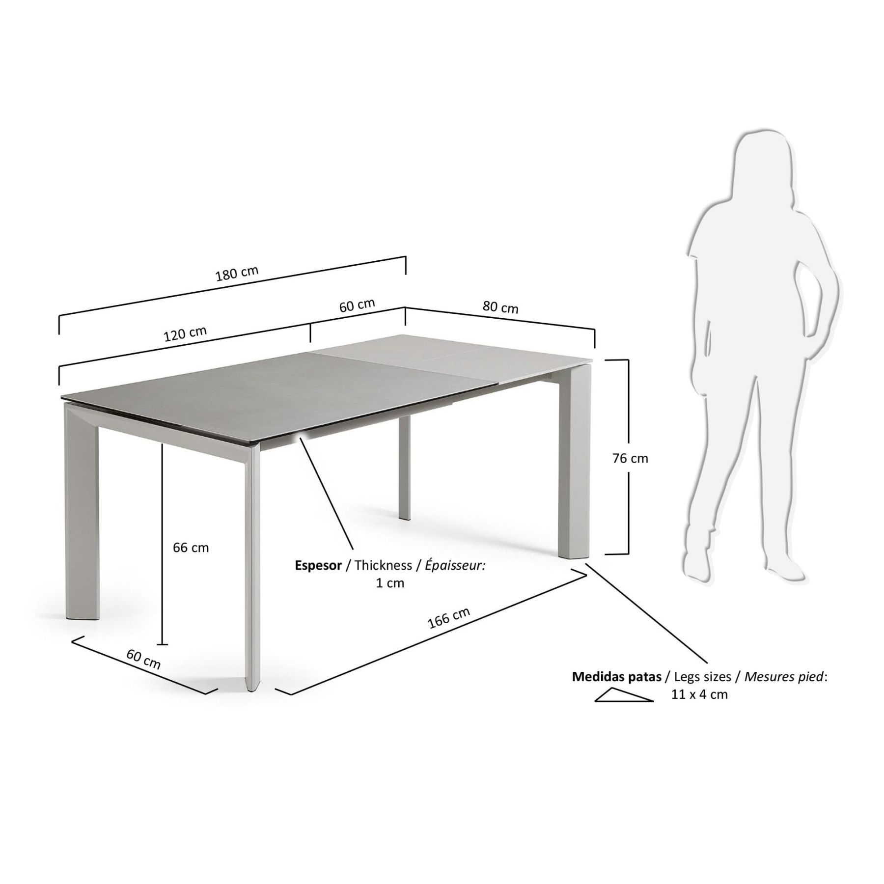 Размеры стола: длина – 120-180 см, ширина – 80 см, высота – 76 см.