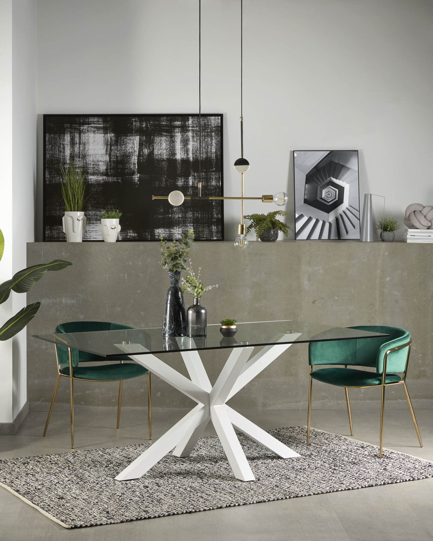 Стол Arya 180x100 стекло белый от фабрики La Forma – всегда уместная модель в городском интерьере. Стол с первой секунды убеждает в том, что он подружится с любым современным интерьером в стиле хай-тек, европейский модерн, минимализм. Его концепция с одной стороны оригинальная, благодаря нетипичной стойке, а с другой – не идет вразрез с городскими трендами. Модель точно универсальная, идеальная для квартиры мегаполиса. Стол прямоугольной формы. Прозрачная столешница выполнена из закаленного ударопрочного стекла толщиной 1,2 см. Края имеют обтекаемую огранку, что обеспечивает комфорт во время эксплуатации. Опора имеет восьмиконечную конструкцию. Она сделана из металла и покрыта белой либо черной эпоксидной краской, либо выполнена в хроме или под дерево (зависит от выбранной модели). Благодаря симметричности конструкции, стол устойчив на любом напольном покрытии, прочный, способный выдерживать высокую весовую нагрузку. Размеры: длина –160, 180, 200 см, ширина – 90 или 100 см, высота – 75 см. (габариты указаны для всех входящих в каталог моделей). Для самостоятельной сборки в комплектацию включен крепеж инструкция. Кроме прямоугольных моделей, в коллекцию Arya включены круглые аналоги.