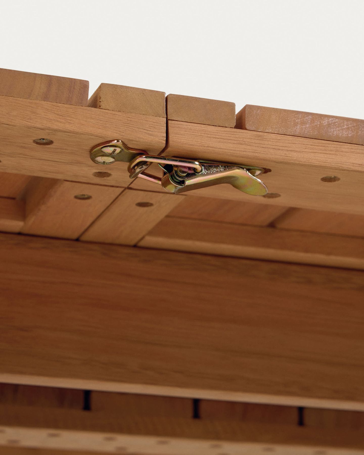 Садовый стол Hanzel раздвижной из массива эвкалипта от фабрики La Forma (ex Julia Grup) – разместите всех своих гостей на террасе легко и красиво. Садовый стол Hanzel – идеальный предмет мебели для вашей уличной обстановки. С ним вы легко сможете не только организовать отдых для большой компании, но и сделать его уютным благодаря 100% натуральности изделия. Эвкалипт – дерево, которое украсит вашу террасу. Стол имеет прямоугольную форму и полностью сделан из древесины эвкалипта. Столешница толщиной 2,5 см имеет дощатую структуру, благодаря чему она быстро просыхает, не накапливает влагу. Ножки пирамидальной формы, с небольшим сужением в нижней части. Они имеют высоту 65 см. Вся поверхность полностью покрыта полиуретаном, который защищает стол от ультрафиолета, влаги, но не закрывает уникальную тональность зерен и вершин древесины. Раскладной механизм раздвижной (бабочка) – потянув за края столешницы, извлекается дополнительная панель и укладывается на опоры. Благодаря увеличению площади, количество посадочных мест увеличивается с 6 до 8. Размеры: ширина – 183-240 см, высота – 75 см, глубина – 100 см. Вес изделия – 29,5 кг. Сборка самостоятельная. Инструкция и крепеж включены в комплектацию. В коллекцию Hanzel включено кресло, выполненное в аналогичном дизайне.