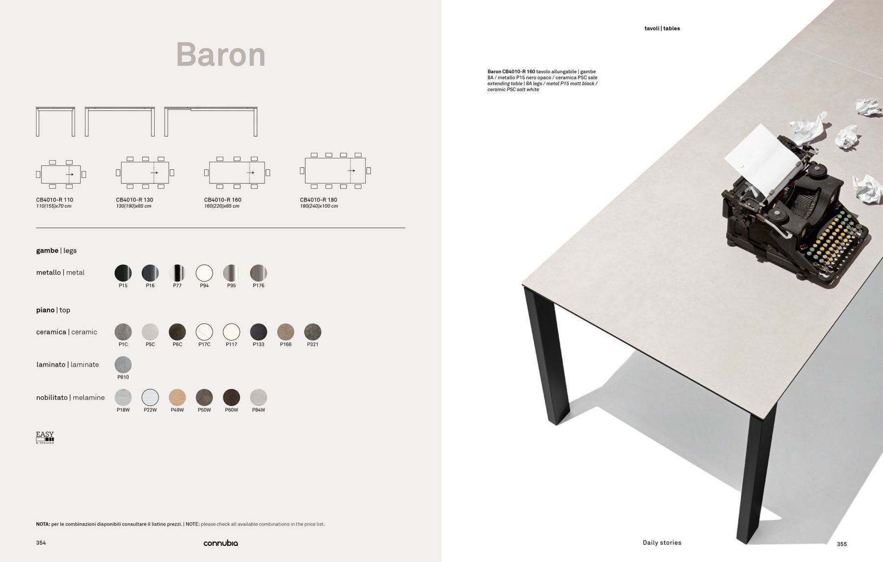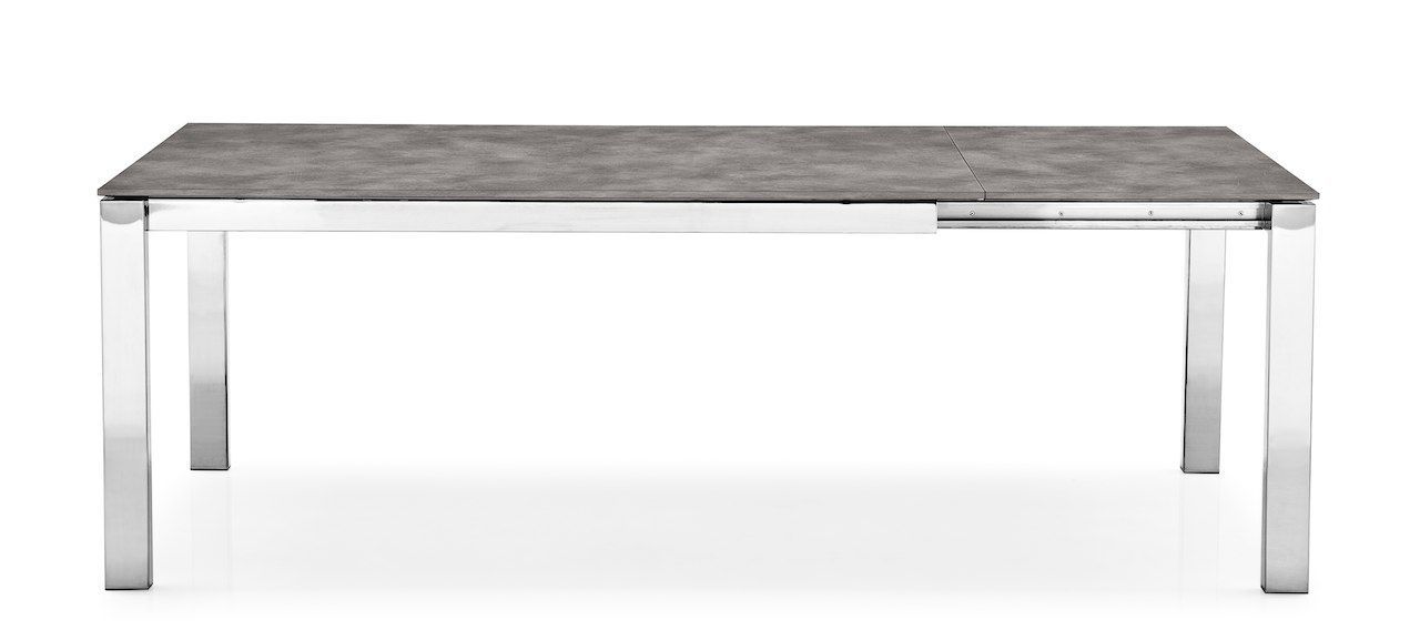 Стол итальянской фабрики Connubia. Доступен в большом количестве размеров, цветов и материалов. Ножки и подстолье выполнены из металла, столешница покрыта керамикой. Стол раздвижной — оснащён полуавтоматическим механизмом раскладывания, по умолчанию с одной вставкой +60 см. В разложенном виде столешница 190 см. Раскладные элементы прячутся внутрь стола. В нашем шоу-руме можно ознакомиться с качеством мебели Connubia и выбрать материалы отделки.