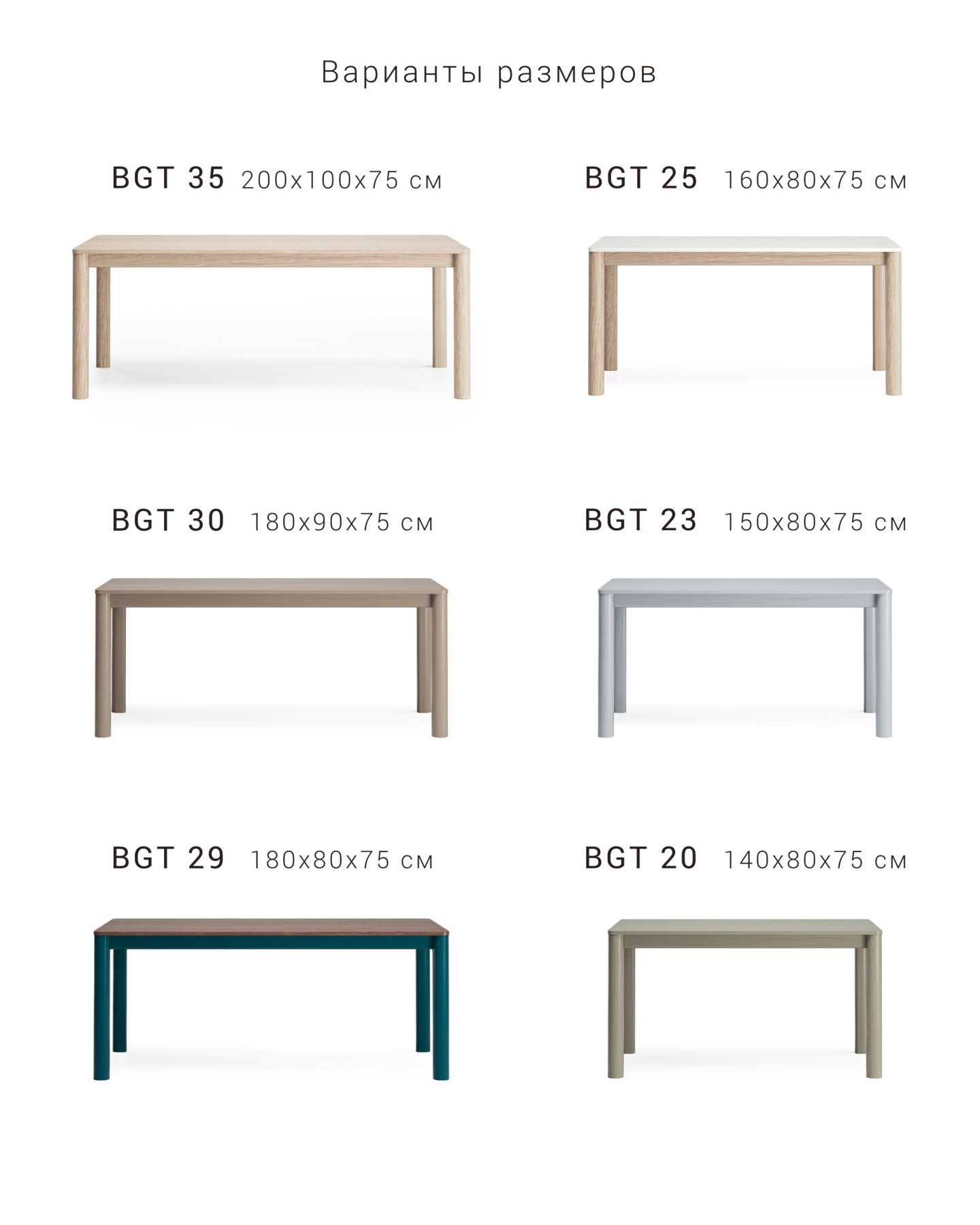 — Высокие каплевидные ножки и царги из массива дуба доступны в 7 видах тонировки, либо в 30 цветах эмали, нанесенной поверх текстуры дерева;