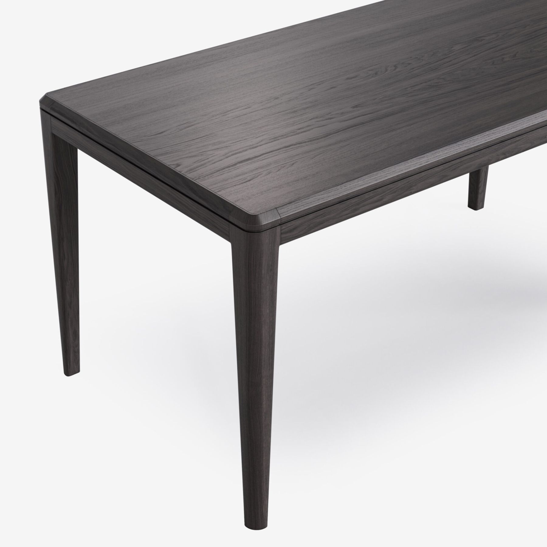 В нашем столе удачно сочетаются эстетика и функциональность. Потрясающая текстура дуба, отсутствие острых углов и выступов, а также изящные ножки, переходящие в структурное основание, формируют гармоничный облик изделия. Используйте прием колор-блок в рамках одного стола – 4 комбинации отделок позволят создать уникальный предмет. Ножки и столешница со скругленными краями доступны в 10 видах тонировки, либо в 30+ оттенках эмали, нанесенной поверх текстуры дерева.