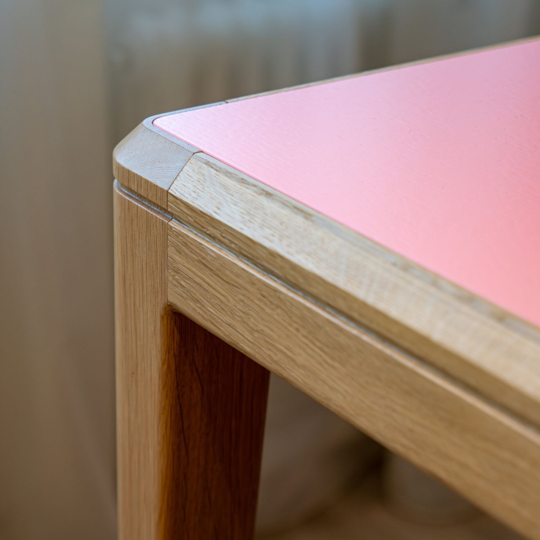 В нашем столе удачно сочетаются эстетика и функциональность. Потрясающая текстура дуба, отсутствие острых углов и выступов, а также изящные ножки, переходящие в структурное основание, формируют гармоничный облик изделия. Используйте прием колор-блок в рамках одного стола – 4 комбинации отделок позволят создать уникальный предмет. Ножки и столешница со скругленными краями доступны в 10 видах тонировки, либо в 30+ оттенках эмали, нанесенной поверх текстуры дерева.