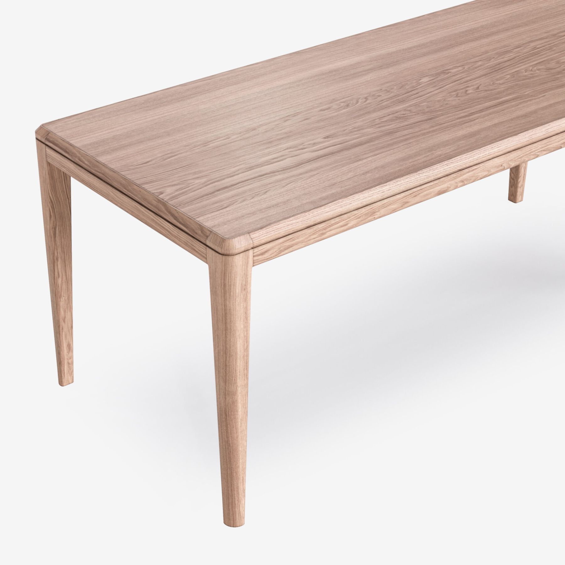 В нашем столе удачно сочетаются эстетика и функциональность. Потрясающая текстура дуба, отсутствие острых углов и выступов, а также изящные ножки, переходящие в структурное основание, формируют гармоничный облик изделия. Используйте прием колор-блок в рамках одного стола – 4 комбинации отделок позволят создать уникальный предмет. Ножки и столешница со скругленными краями доступны в 10 видах тонировки, либо в 30+ оттенках эмали, нанесенной поверх текстуры дерева.