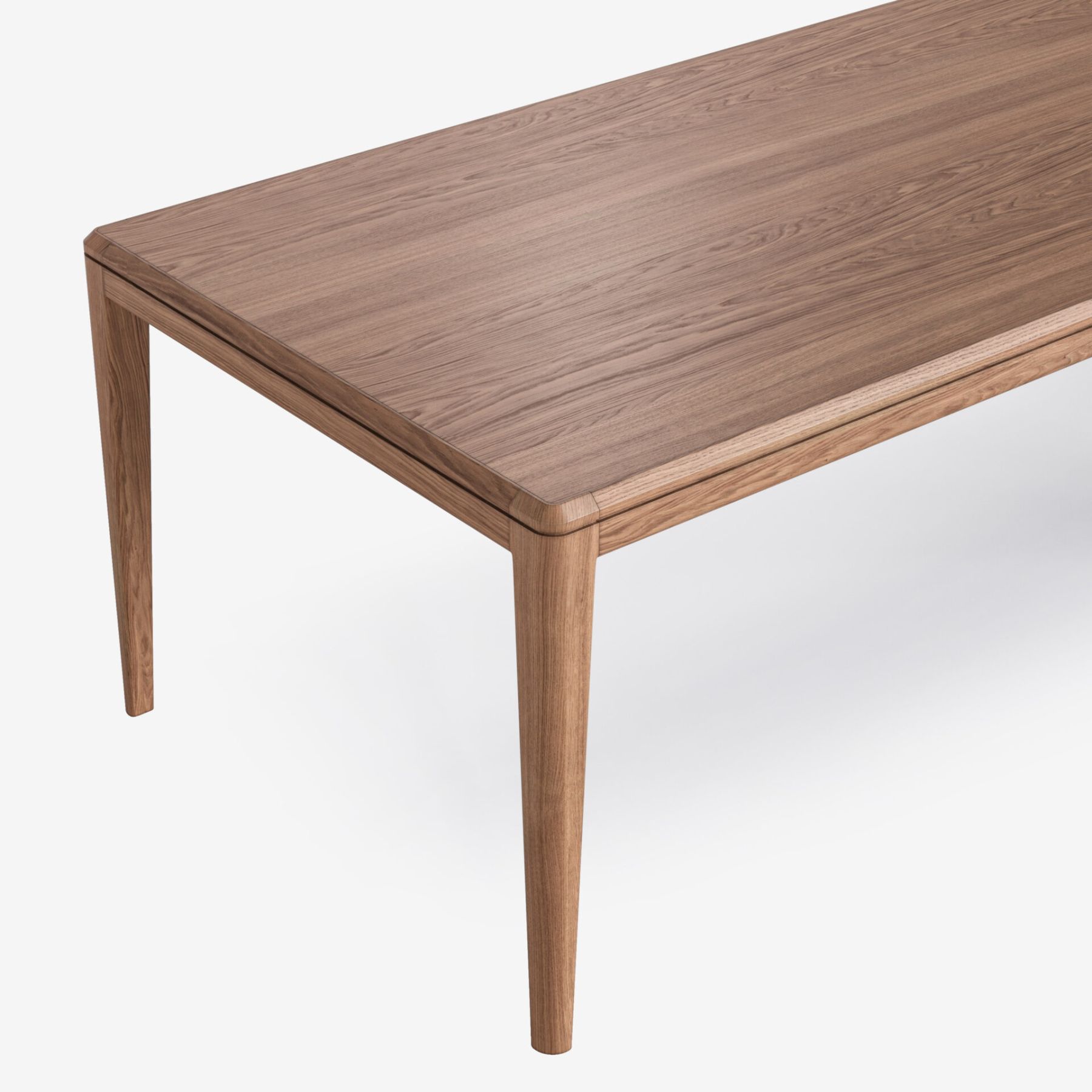 В нашем столе удачно сочетаются эстетика и функциональность. Потрясающая текстура дуба, отсутствие острых углов и выступов, а также изящные ножки, переходящие в структурное основание, формируют гармоничный облик изделия. Используйте прием колор-блок в рамках одного стола – 4 комбинации отделок позволят создать уникальный предмет. Ножки и столешница со скругленными краями доступны в 10 видах тонировки, либо в 30+ оттенках эмали, нанесенной поверх текстуры дерева.