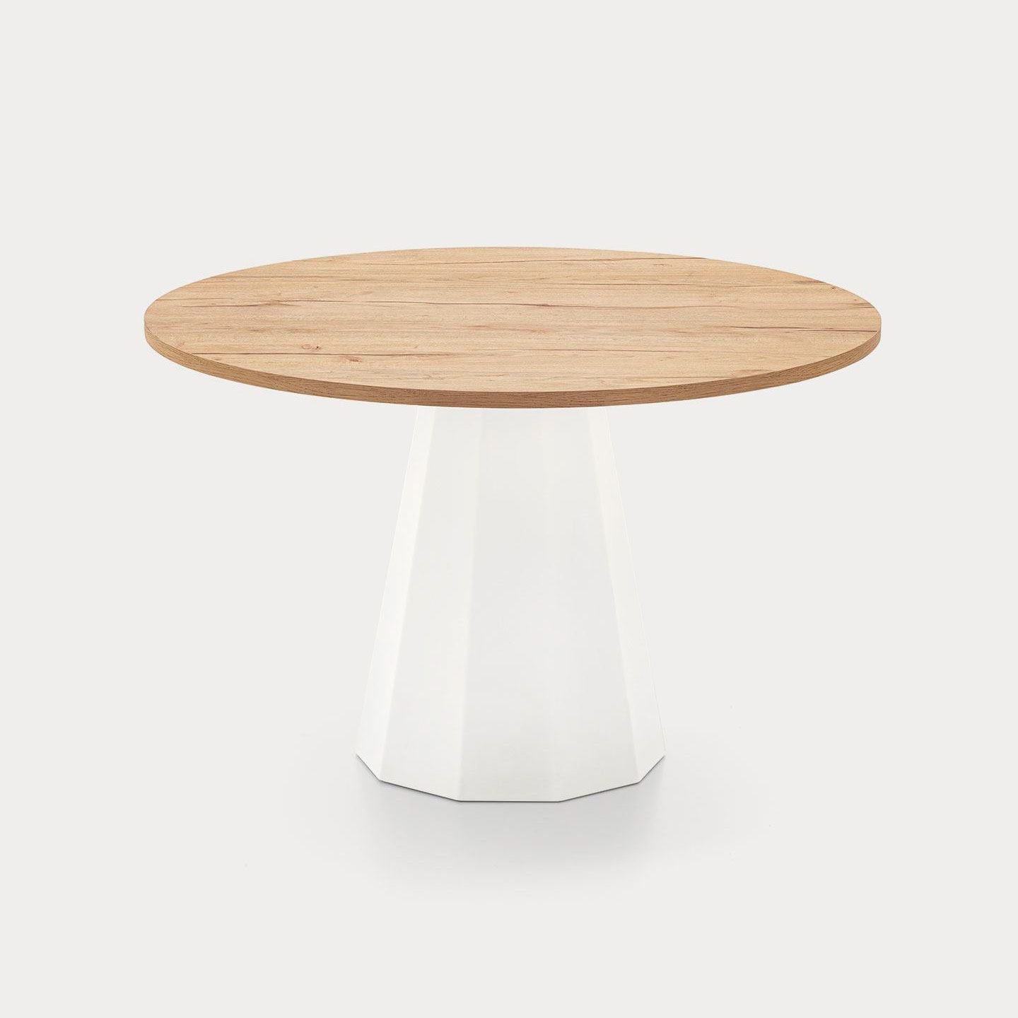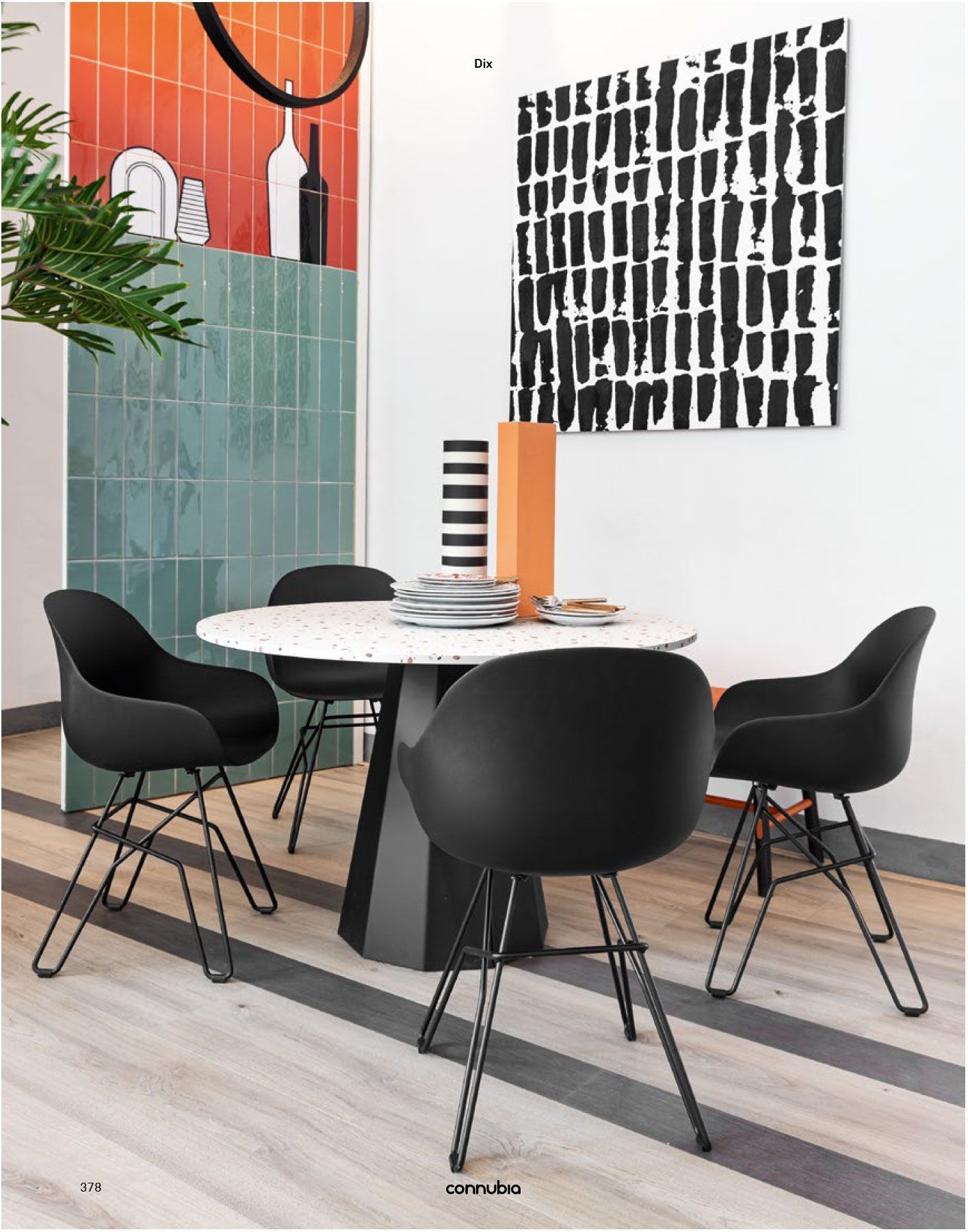 Нераздвижной круглый стол DIX установлен на десятигранной конической подставке из металла. Имеет регулируемые подпятники компенсирующие неровность пола. Доступен в двух размерах — 90 и 120 см. Отделки столешницы можно выбрать из каталога.