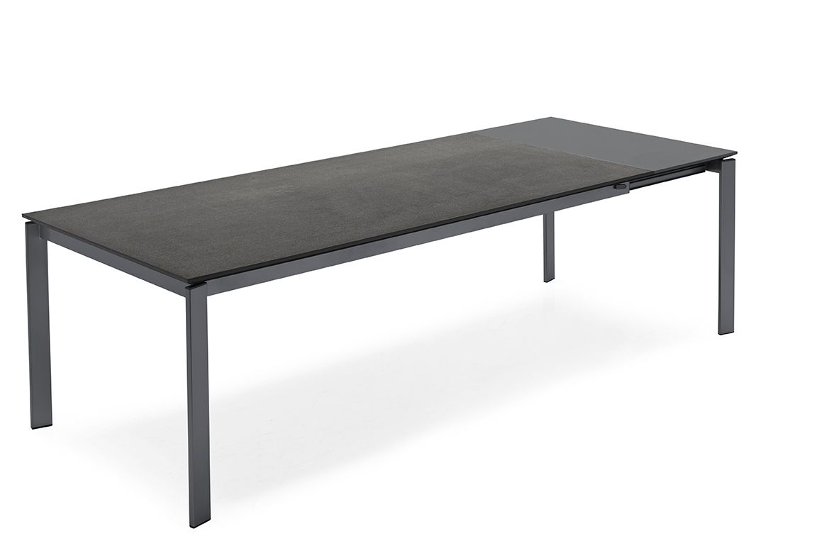 Стол итальянской фабрики Connubia. Доступен в большом количестве размеров, цветов и материалов. Ножки и подстолье выполнены из металла, столешница покрыта керамикой. Стол раздвижной, по умолчанию с одной вставкой +50 см. В некоторые модели данного стола можно устанавливать до 2-х вставок, тем самым увеличив столешницу до 300 см в разложенном виде. Раскладные элементы прячутся внутрь стола. В нашем шоу-руме можно ознакомиться с качеством стола и выбрать материалы отделки.