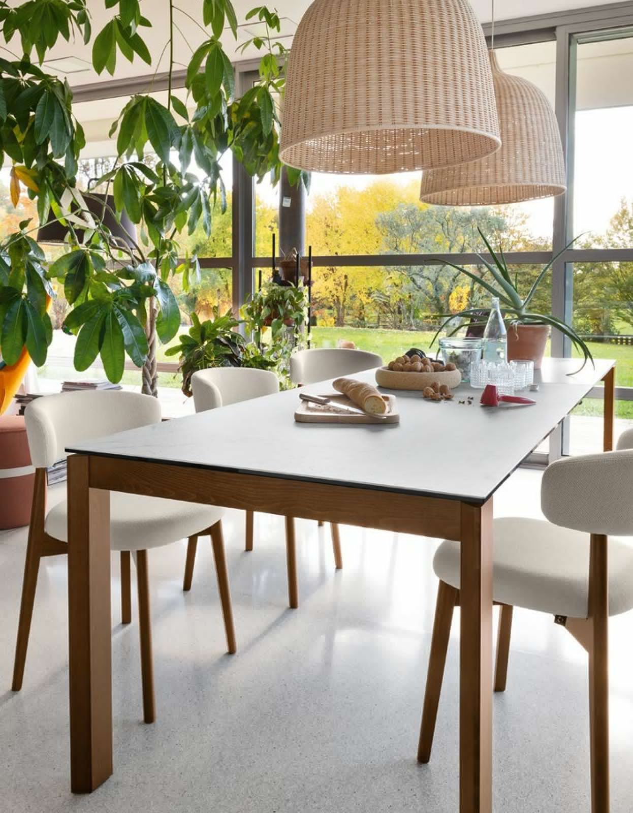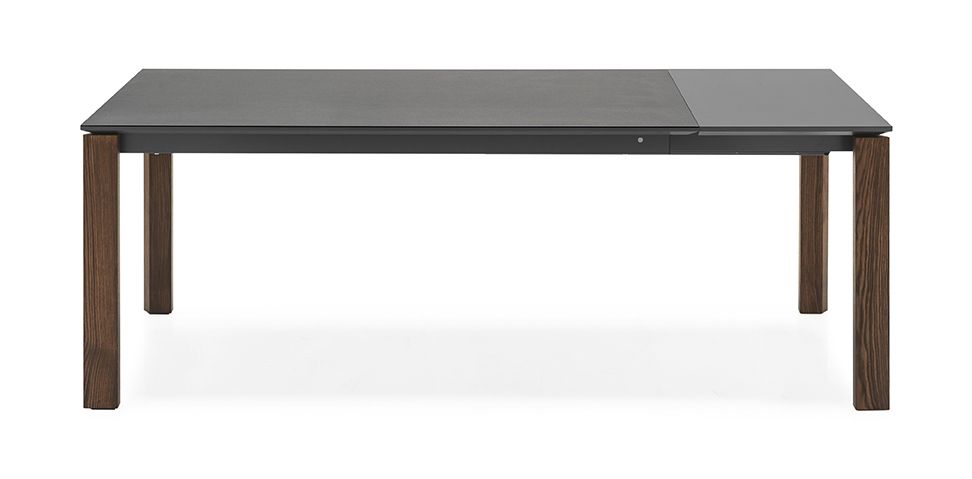 Стол итальянской фабрики Connubia. Доступен в большом количестве размеров, цветов и материалов. Ножки и подстолье выполнены из массива ореха, столешница покрыта керамикой. Стол раздвижной, по умолчанию с одной вставкой +50 см. В некоторые модели данного стола можно устанавливать до 2-х вставок, тем самым увеличив столешницу до 300 см в разложенном виде. Раскладные элементы прячутся внутрь стола. В нашем шоу-руме можно ознакомиться с качеством стола и выбрать материалы отделки.