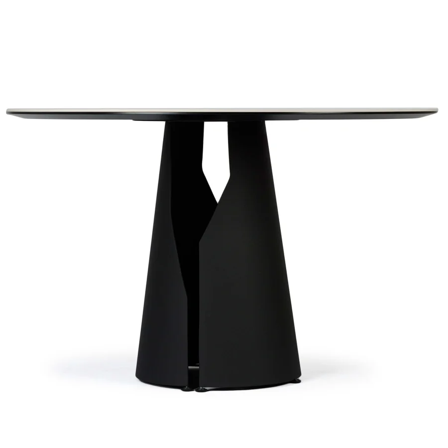 Уникальное основание с вырезной деталью — отличное место для декора, добавляя индивидуальности и стиля вашему интерьеру. Сочетание темных и светлых оттенков делает стол универсальным, идеально подходящим для любого стиля, от минимализма до классики.
