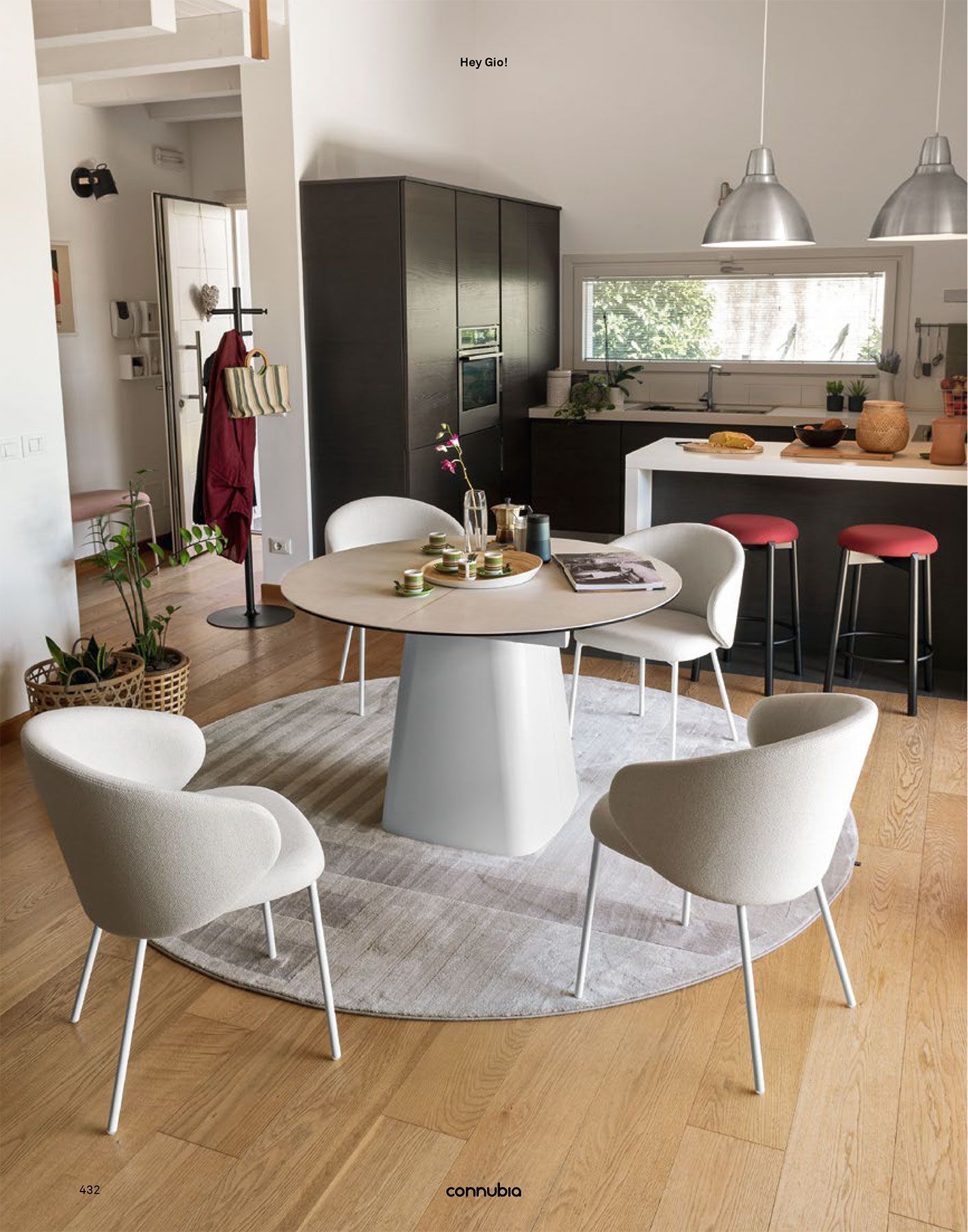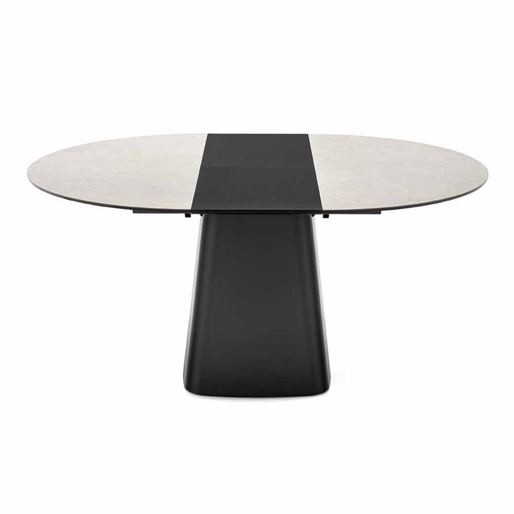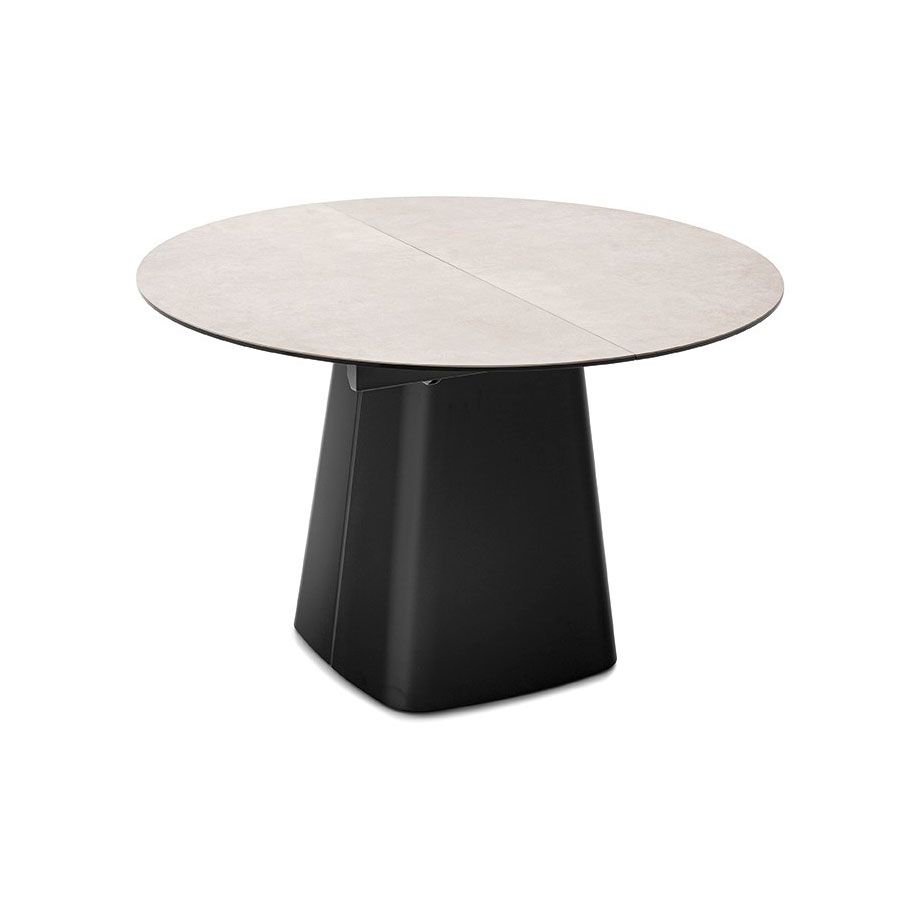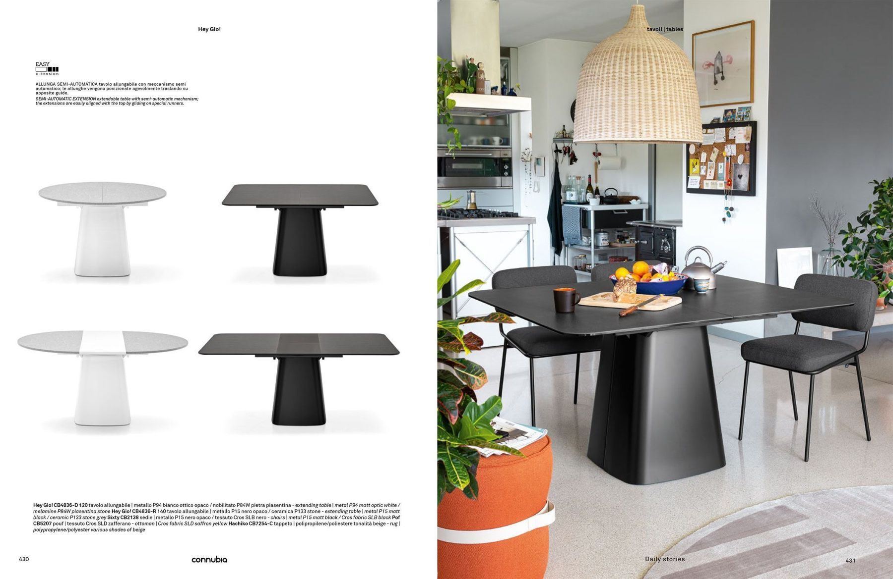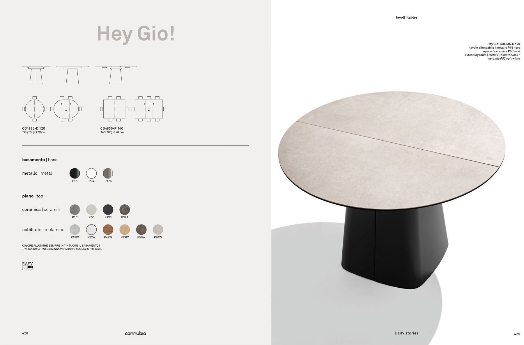 Современный, раздвижной стол 120 — 160 см. Основание из металла, выполнено в виде усечённой пирамиды квадратного сечения, со скруглёнными углами. Столешница изготавливается из современных материалов: ламината и керамики. Вставка-бабочка в цвет основания. Вы увидите свою кухню и гостиную в новом свете с Hey Gio!.