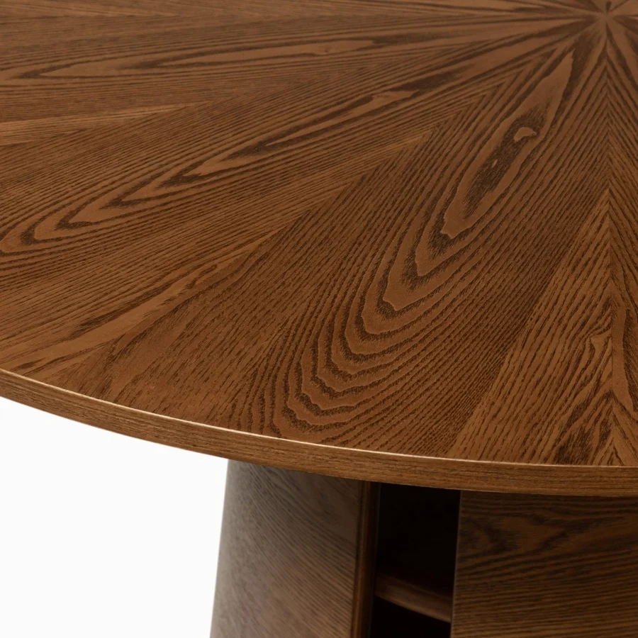 Этот стол выделяется своими плавными линиями и современным дизайном, что делает его идеальным местом для семейных ужинов и дружеских встреч.