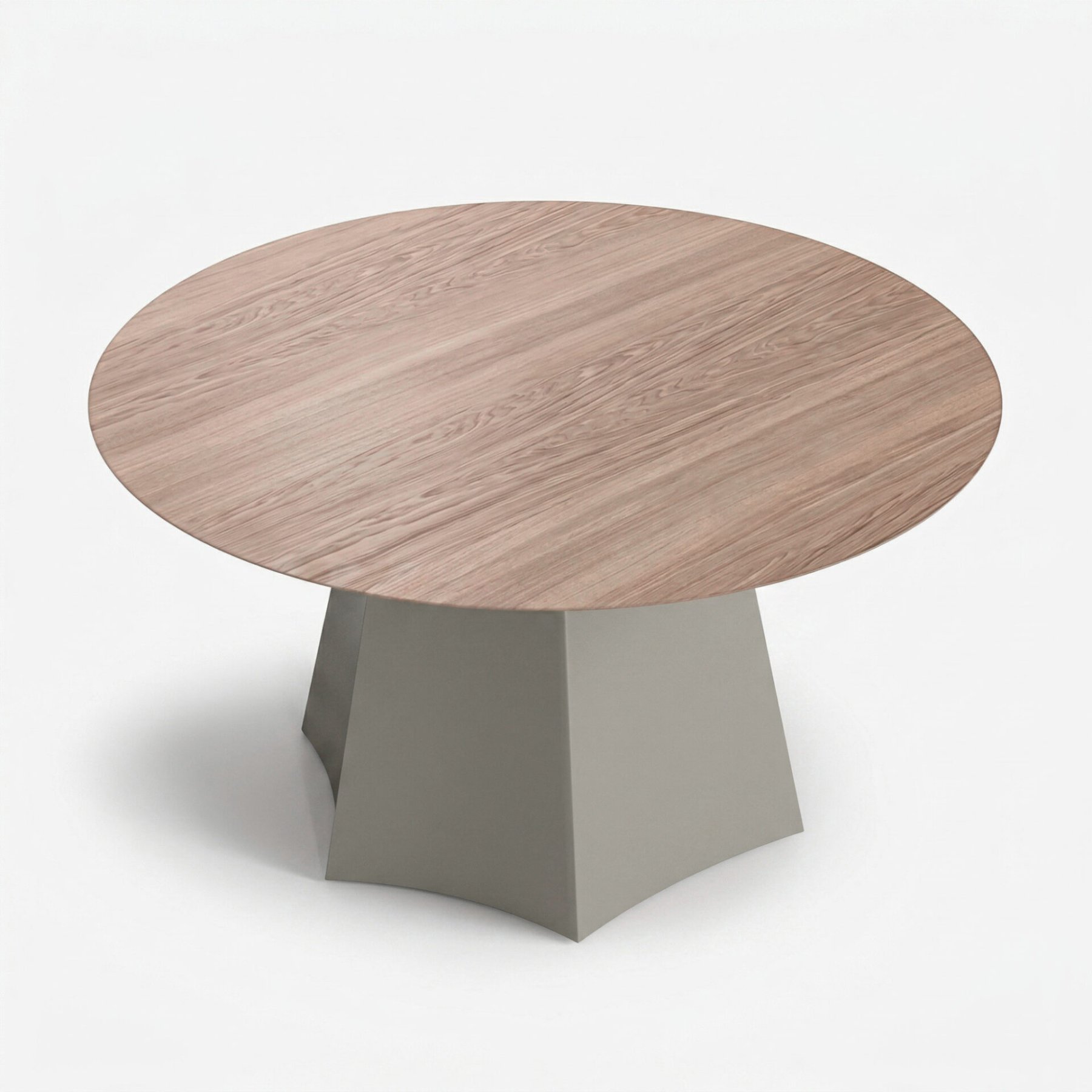 Круглая столешница из шпона дуба со сложным скосом торца кажется почти парящей над основанием — лёгкой и воздушной. Она формирует цельный объём и организует пространство вокруг себя без острых углов и избыточных деталей. LUMO одинаково уместен и в минималистичной гостиной, и в более насыщенной столовой, сохраняя визуальное спокойствие и структурную ясность.