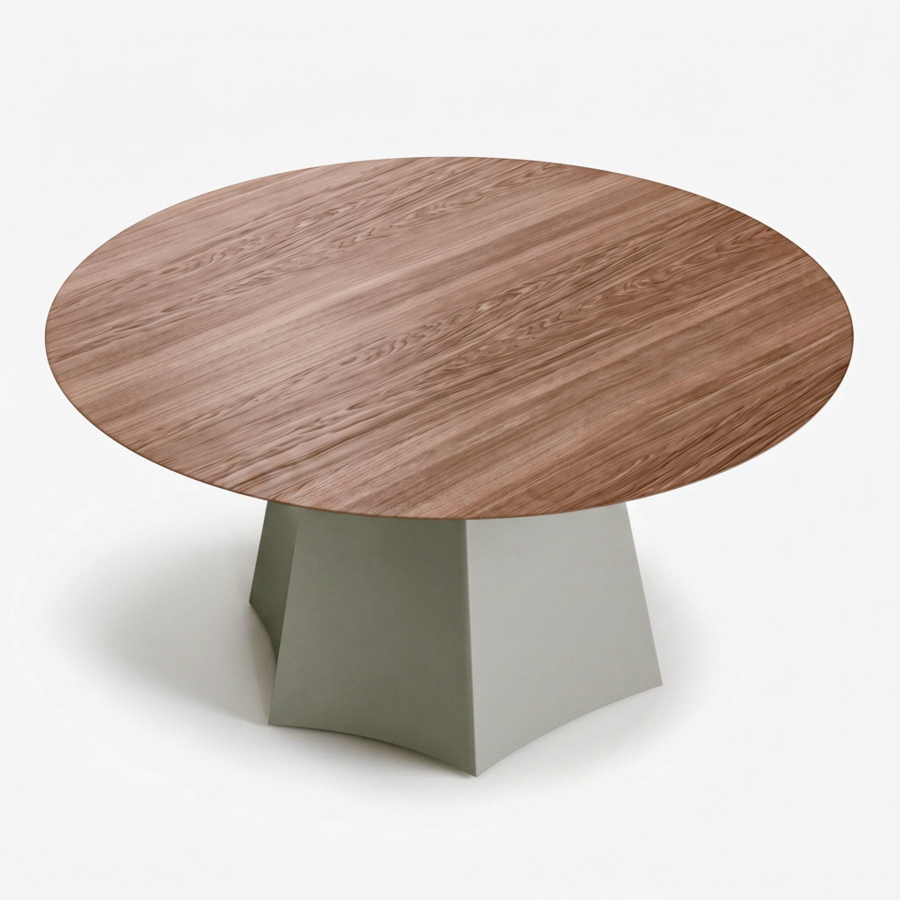 Круглая столешница из шпона дуба со сложным скосом торца кажется почти парящей над основанием — лёгкой и воздушной. Она формирует цельный объём и организует пространство вокруг себя без острых углов и избыточных деталей. LUMO одинаково уместен и в минималистичной гостиной, и в более насыщенной столовой, сохраняя визуальное спокойствие и структурную ясность.
