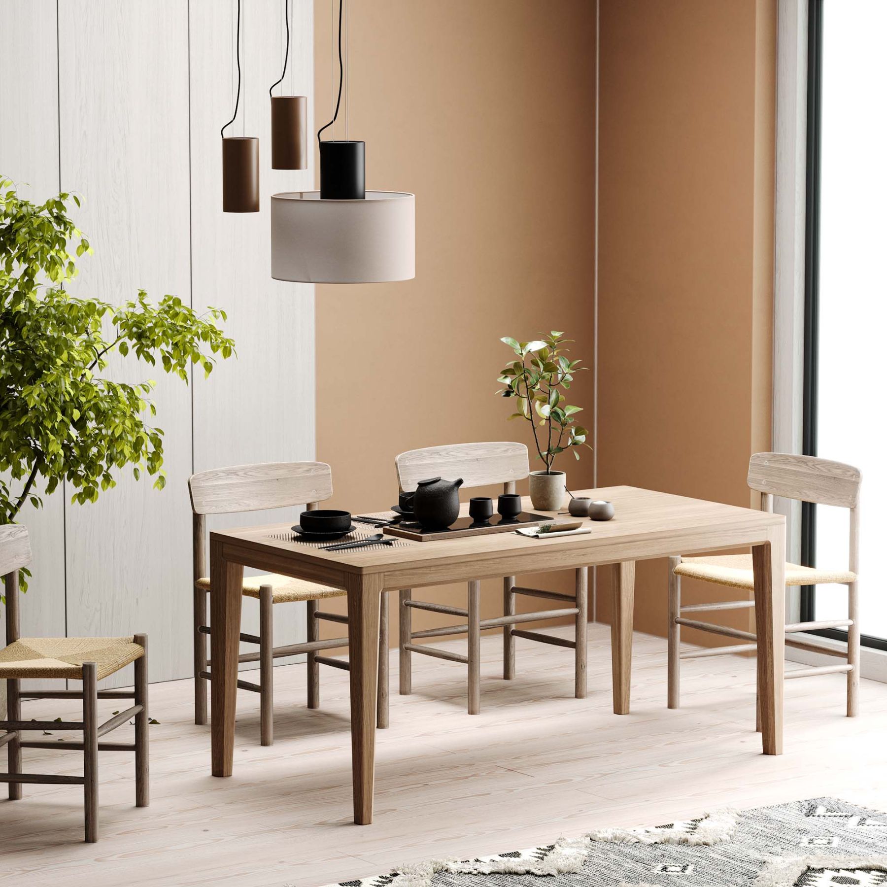 Обладает лаконичным дизайном без острых углов и выступов. Фактура натурального дерева создает приятные тактильные ощущения. Благодаря массивному основанию из дуба уверенно выдерживает большие нагрузки, и может быть по—настоящему большим — до 220 см в длину.