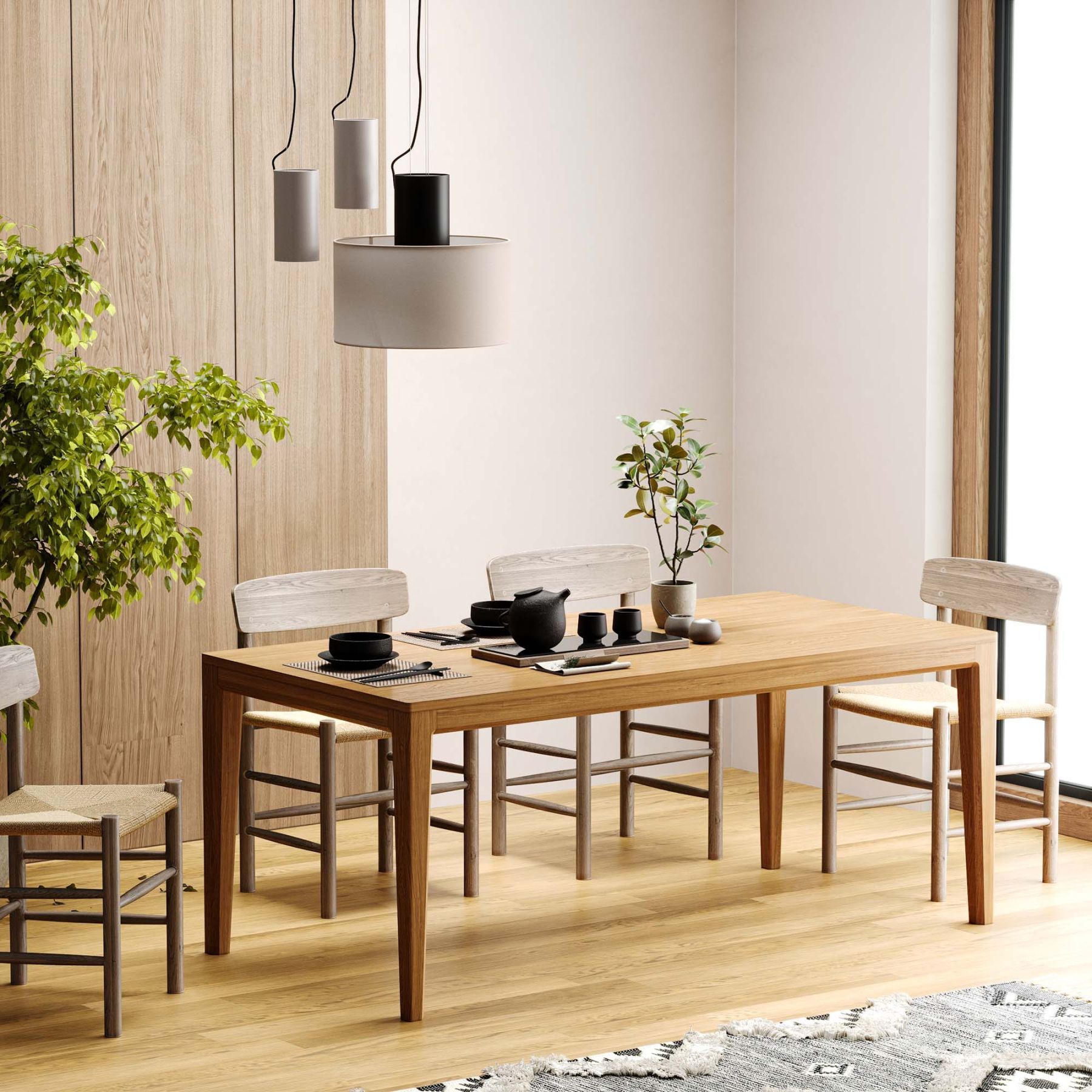 Обладает лаконичным дизайном без острых углов и выступов. Фактура натурального дерева создает приятные тактильные ощущения. Благодаря массивному основанию из дуба уверенно выдерживает большие нагрузки, и может быть по—настоящему большим — до 220 см в длину.