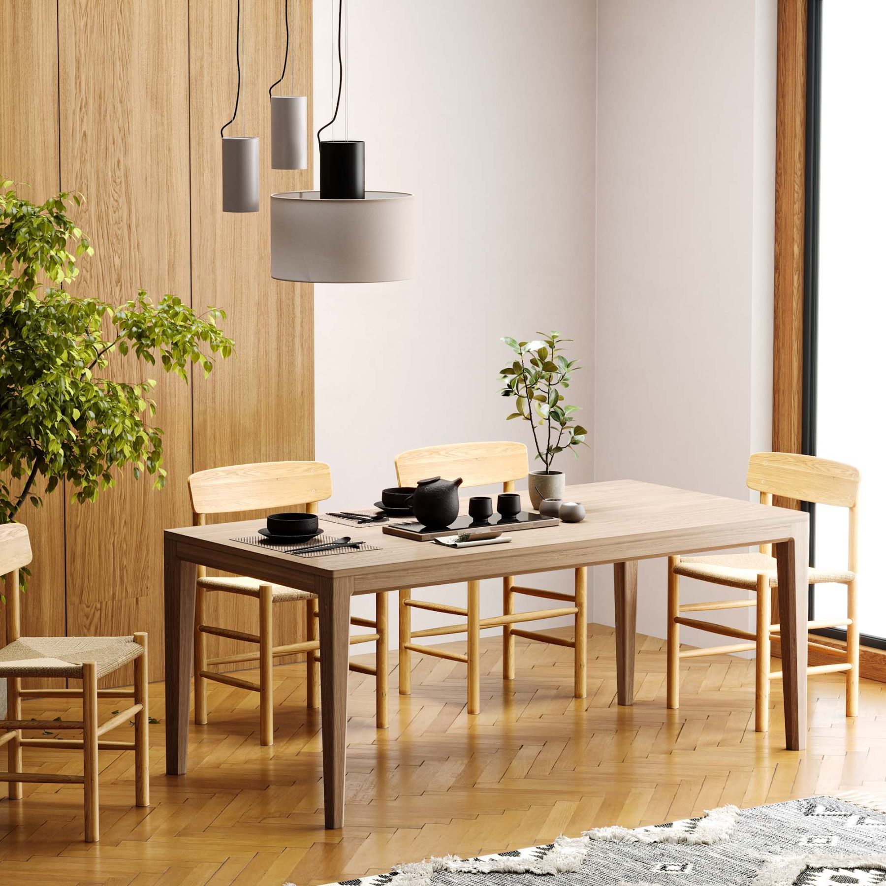 Обладает лаконичным дизайном без острых углов и выступов. Фактура натурального дерева создает приятные тактильные ощущения. Благодаря массивному основанию из дуба уверенно выдерживает большие нагрузки, и может быть по—настоящему большим — до 220 см в длину.