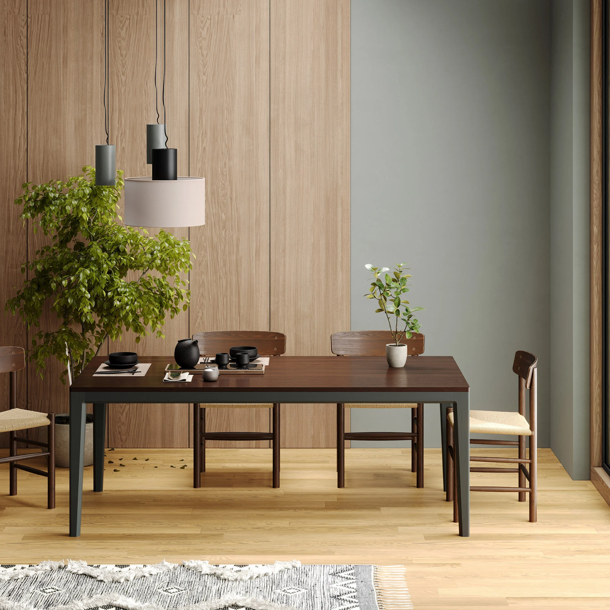 Обладает лаконичным дизайном без острых углов и выступов. Фактура натурального дерева создает приятные тактильные ощущения. Благодаря массивному основанию из дуба уверенно выдерживает большие нагрузки, и может быть по—настоящему большим — до 220 см в длину.