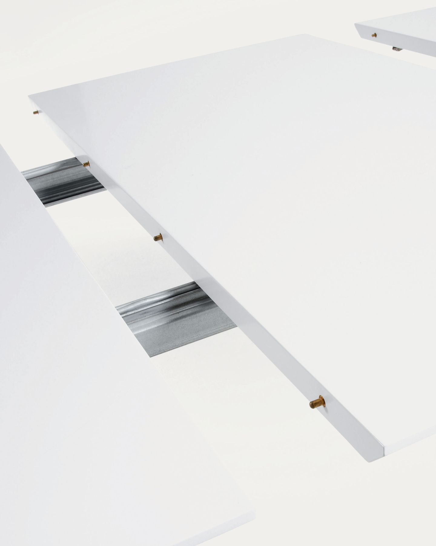 Чтобы увеличить площадь стола, нужно раздвинуть столешницу и извлечь две дополнительные панели. Раздвижной механизм реечный, сделан из прочной оцинкованной стали.