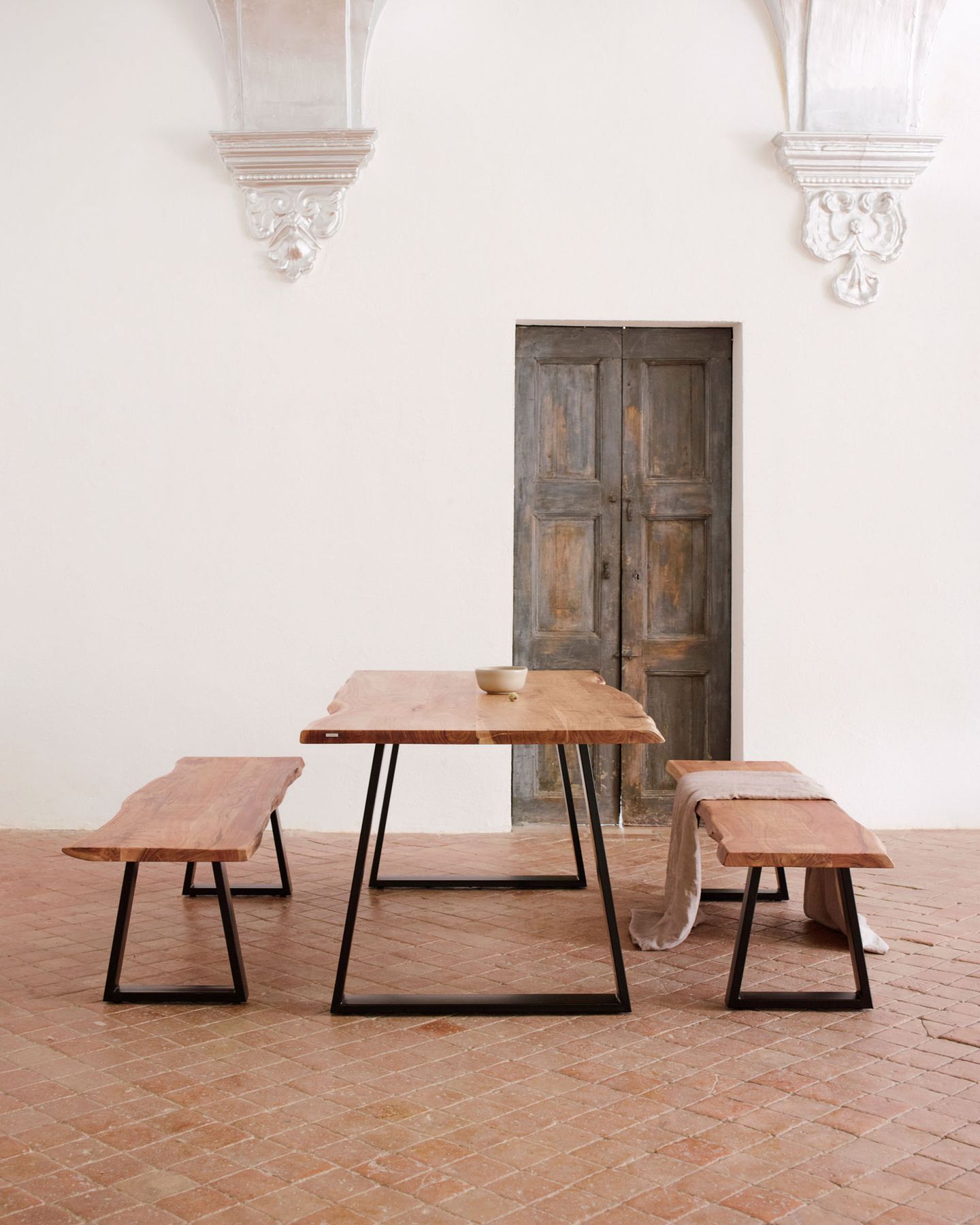 Стол Sono от фабрики La Forma – нескромные габариты для интерьера в стиле минимализм. Стол Sono – безупречная модель для стильных городских интерьеров, где акцент сделан на натуральные материалы, необычную геометрию, функциональность. Изделие состоит всего из трех элементов, оно конструктивно и внешне полностью соответствует минимализму. А прочная и массивная столешница – это явный плюс, чтобы присмотреться к этому столу получше. Стол прямоугольной формы. Для изготовления столешницы использовался массив натурального дерева (акация). Благодаря щадящей технологии обработки, сохранена фактура дерева, имеются неровности по краям, небольшие зазоры между досками. Все это придает изделию уникальный и самобытный внешний вид. Для защиты от негативных воздействий во время эксплуатации, столешница покрыта полиуретаном. Ее толщина составляет 4 см, что гарантирует прочность и надежность, даже при высоких весовых нагрузках. Опоры сделаны из металла, покрытого черной эпоксидной краской. Они имеют форму рамочных трапеций с шириной грани 9,5 см. Размеры стола: длина – 160,180, 200, 220 см (зависит от выбранной модели), ширина – 90, 95,100 см, высота – 76 см. Опоры потребуется прикрутить самостоятельно. Инструкция и крепеж включены в комплектацию.