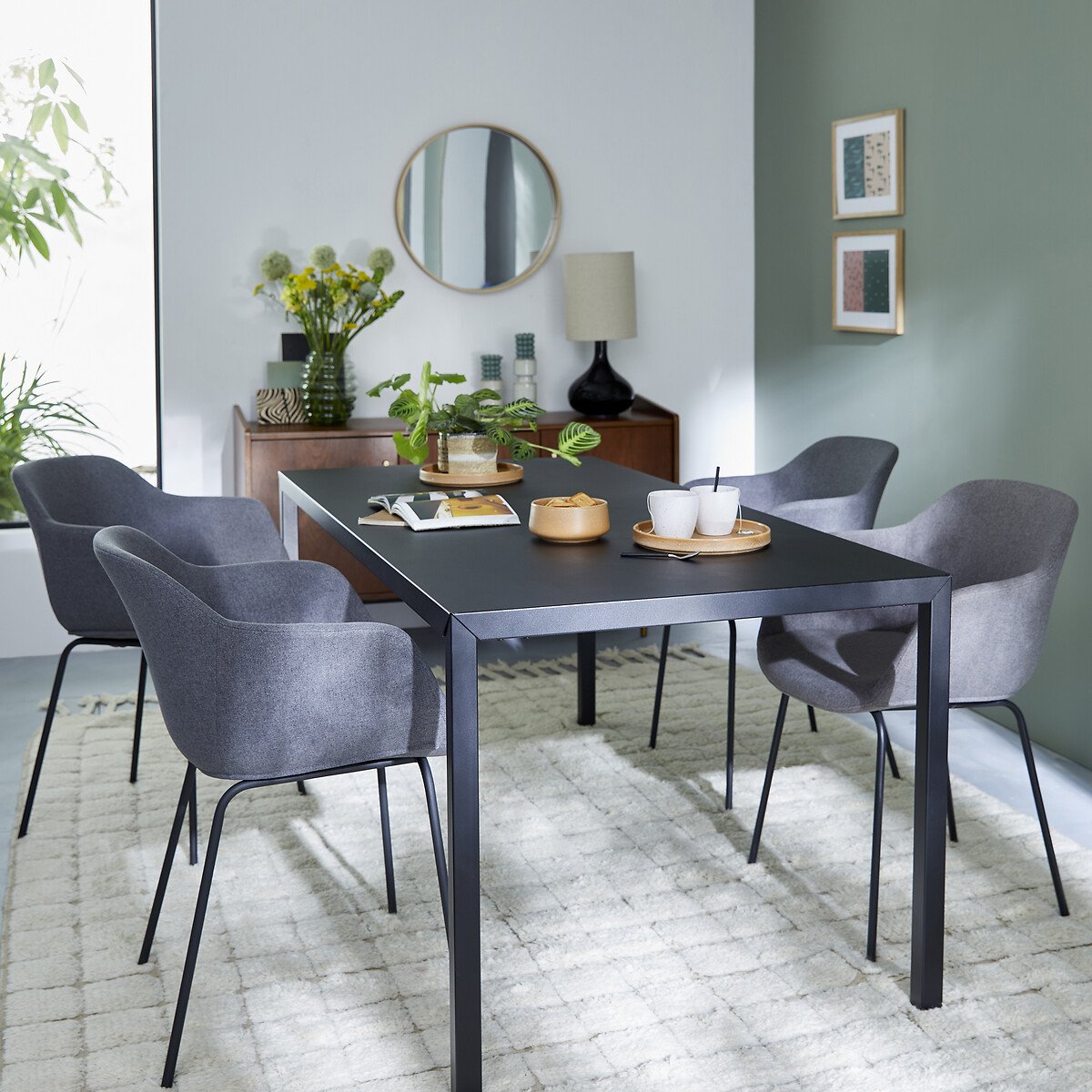 Стол обеденный на 6 персон Hiba в нео-классическом стиле из черного матового металла.Описание • Обеденный стол на 6 персон • Сталь, покрытая матовым эпоксидным лаком черного цвета • Сборка: примерно 1 час, два человека (минимум)Уход • Рекомендуем использовать подложки под горячее или плейсматы для защиты поверхности стола.Размеры • Длина 175 см • Высота: 74 см • Глубина 85 смДоставкаСамостоятельная сборка. Доставка осуществляется до квартиры по предварительной договоренности. Внимание! Убедитесь в том, что товар возможно доставить на дом, учитывая его габариты (проходит в двери, по лестницам, в лифты).Размеры и вес упаковкиОдна упаковка • Д187 x В17 x Г94 см, 35 кг