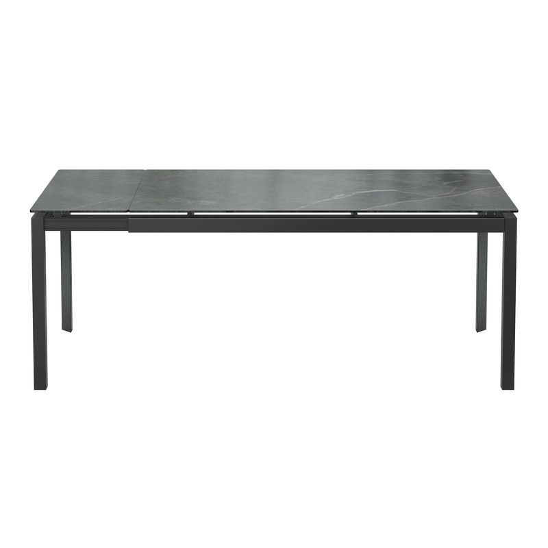 Столешница состоит из закаленного стекла (8 мм) нижним слоем и керамики (6 мм) черного с прожилкамии цвета верхним слоем. Подстолье и 4 ноги - прочный металл с максимально стойким к внешним воздействиям порошковым покрытием темно-серого цвета.