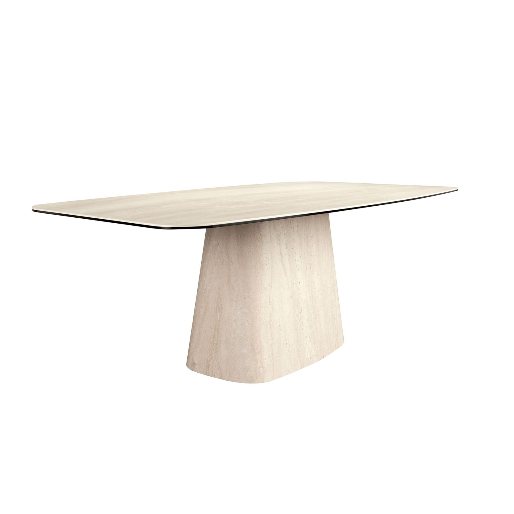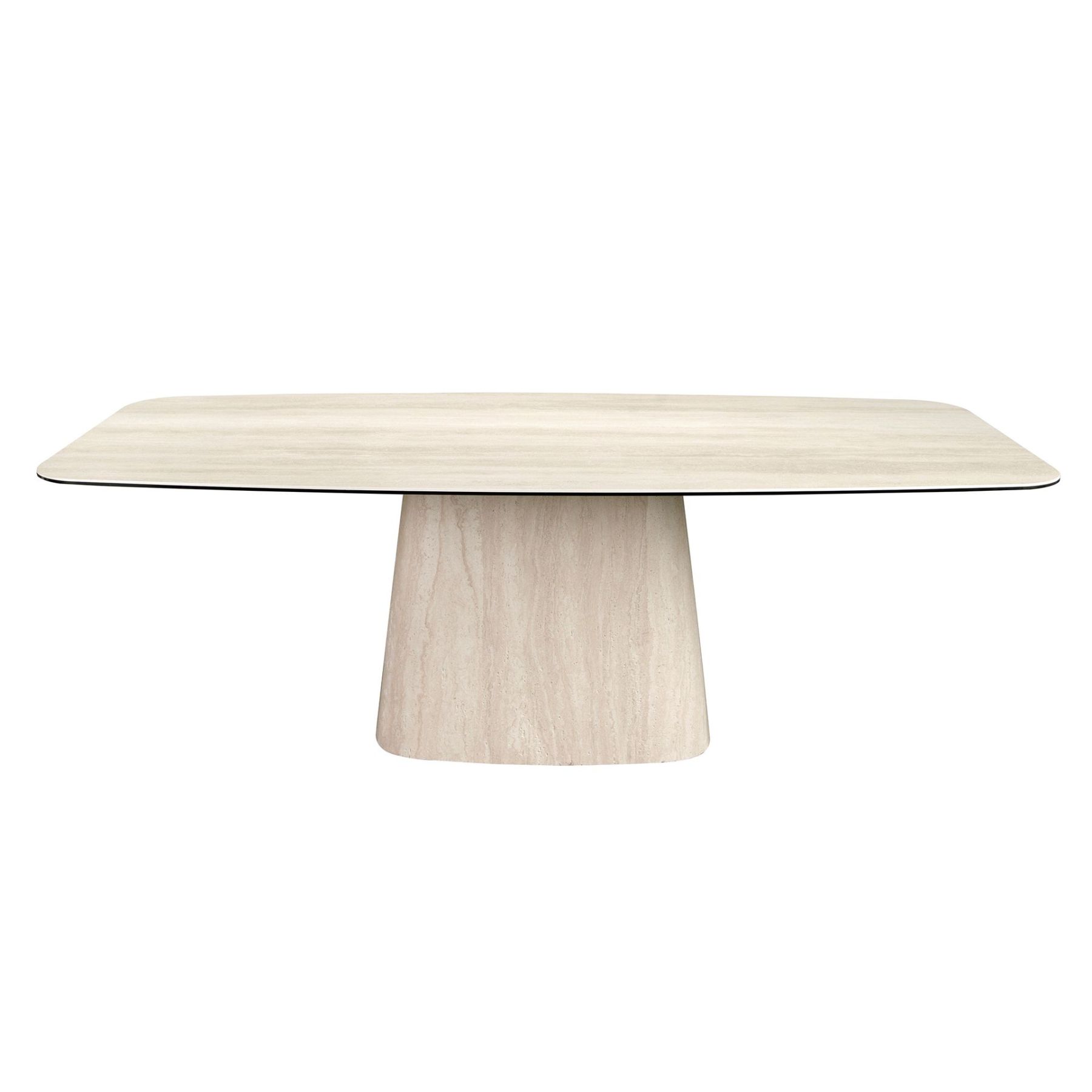 Овальный обеденный стол-бочонок современного дизайна с фиксированной столешницей и структурой из керамогранита песочного цвета в матовой отделке. Идеальный стол для придания яркости и авангарда вашей кухне, гостиной или столовой.