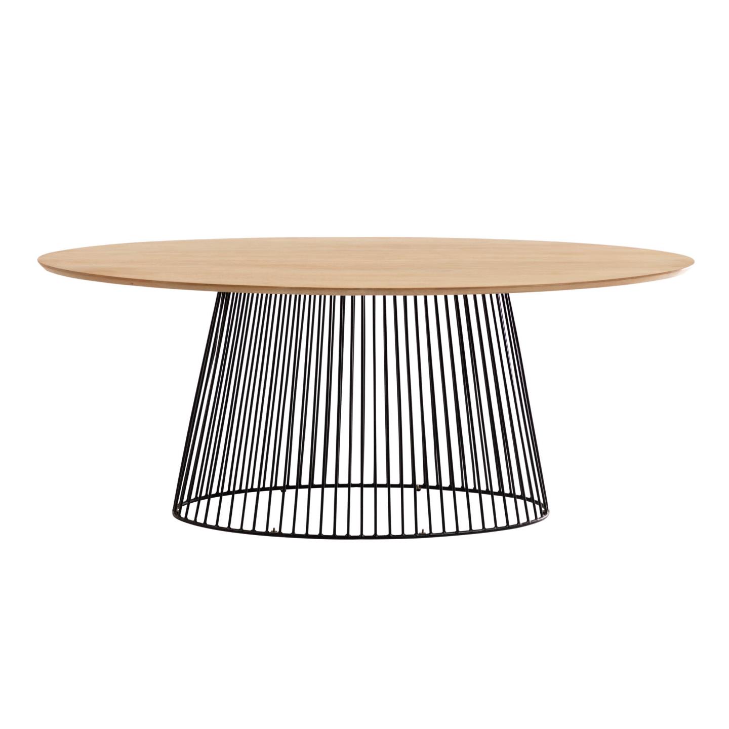 Овальный стол Leska от фабрики La Forma – модель для интерьеров, которым нужна яркая, центральная деталь. Овальный стол Leska сразу привлекает внимание своим эффектным и нетипичным дизайном. Уникальная по своей конструкции опора, бесценная древесина манго, впечатляющие габариты – все эти особенности модели сумеет оценить даже самый искушенный поклонник европейской мебели. Такой стол станет «изюминкой» в современном интерьере, не сомневайтесь. Стол овальной формы. Столешница сделана из массива дерева манго. Поверхность покрыта прозрачным полиуретаном для защиты от негативного воздействия внешней среды и сохранения натурального рисунка. Высота столешницы составляет 2,6 см. Удерживает деревянную панель металлическая стойка, состоящая из прутьев диаметром 0,8 см. Внизу прутья приверны к опоре, имеющей также форму овала (длина 114 см и ширина 59 см). Прочность металла обеспечивает стойкость к высоким весовым нагрузкам (максимально допустимая – 40 кг), а покрытие черной эпоксидной краской – защиту от влаги. Стол рассчитан на посадку из 8 человек. Размеры: длина – 200 см, ширина – 110 см, высота – 76 см. Вес изделия составляет 48 кг. Для сборки в комплектацию включена инструкция, крепеж. В коллекцию Leska также входит журнальный столик и набор из двух столиков.