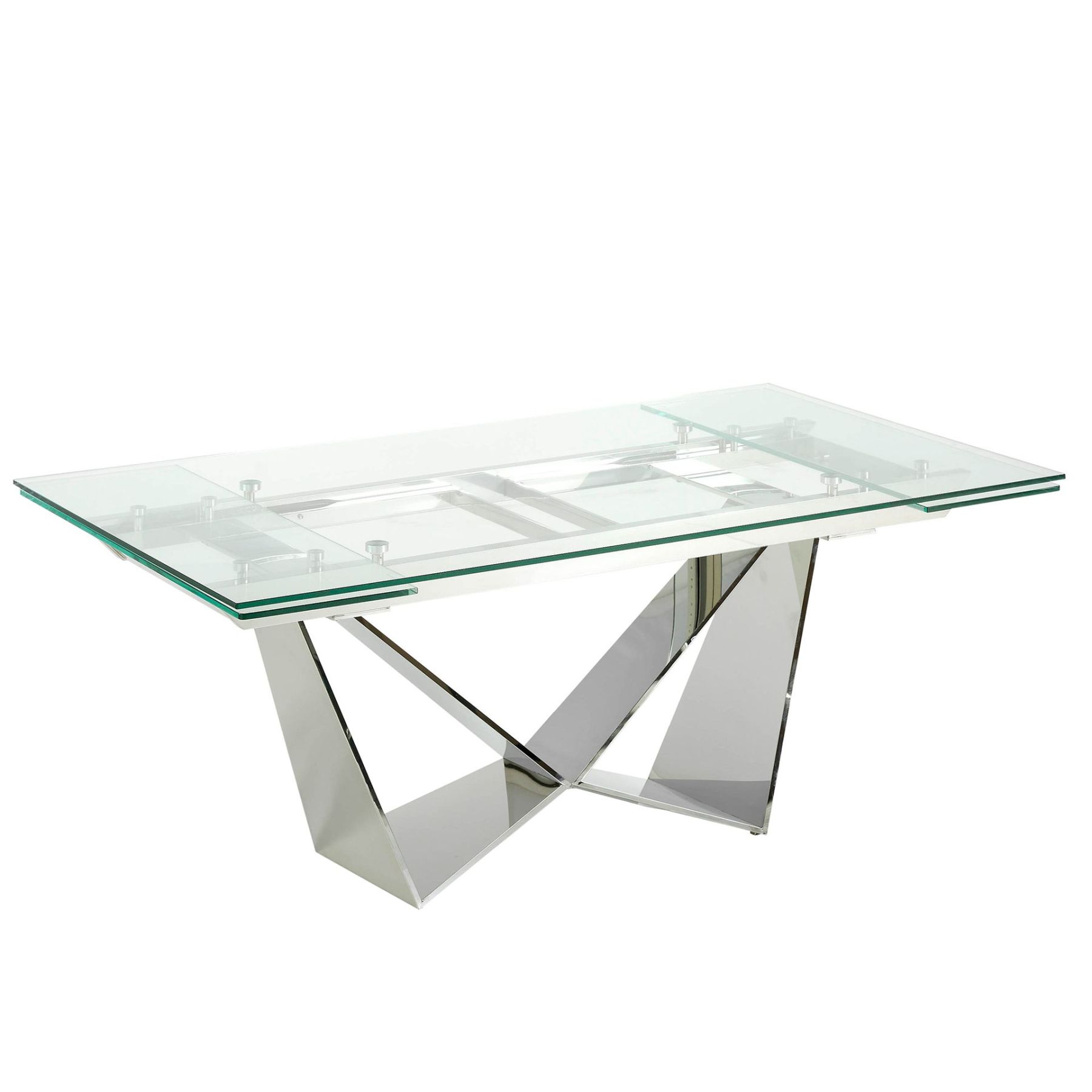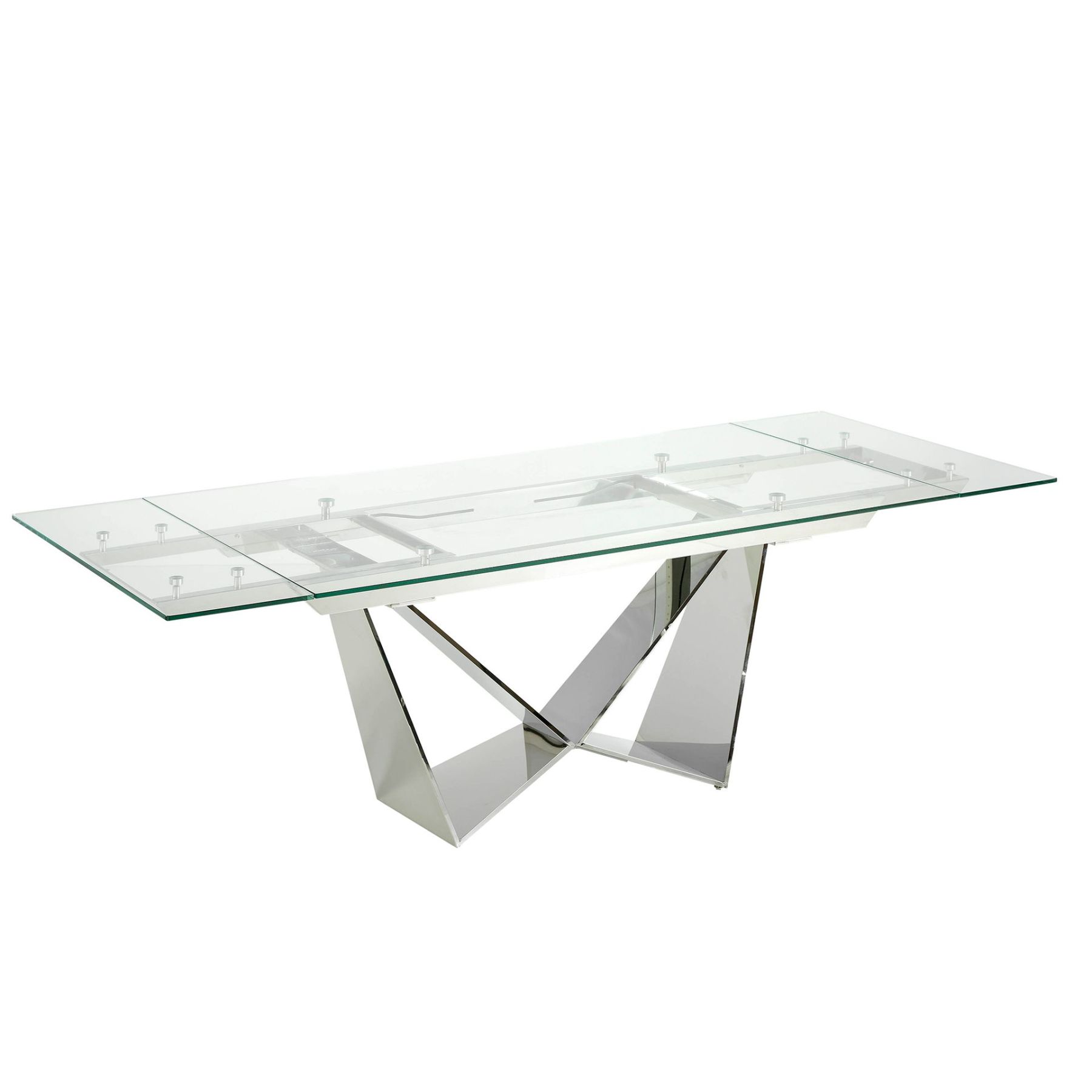 Стол CT2302 от фабрики Angel Cerda — ультрамодный дизайн и оригинальная конструкторская задумка. Стол удивляет и очаровывает с первого взгляда. В этой модели дизайнеры не скрывают конструкцию, а демонстрируют ее каждому, кто просто посмотрит на стол сверху. Но выставленная напоказ «начинка» вовсе не отталкивает, а наоборот, заставляет рассмотреть каждую деталь подробнее, чтобы разгадать устройство этого «технологичного» изделия. Стол сделан из хромированной стали и наделен раздвижной стеклянной столешницей. Благодаря реечному механизму удлинения, увеличить габариты стола просто и быстро — достаточно выдвинуть с обеих сторон дополнительные секции (они также видны под стеклом столешницы). Закаленное стекло имеет высокий предел прочности. Плюс к этому, его поддерживает каркас из металла. Поэтому, эту модель можно в полной мере использовать в качестве обеденного стола. Металлические ножки имеют необычную конструкцию. Оригинальная геометрия в сочетании с хромированной сталью образует удивительную игру отражений, еще более привлекая внимание к данной модели. Стол будет уместен в гостиной, выполненной в стиле модерн (с преобладанием мебели из стекла и металла), хай-тек, фьюжн. Размеры — 160×90×75 (длина, ширина, высота). Вес стола составляет 104 кг. Доставка осуществляется в разобранном виде. Для правильной сборки в комплект входит необходимый крепеж и инструкция.