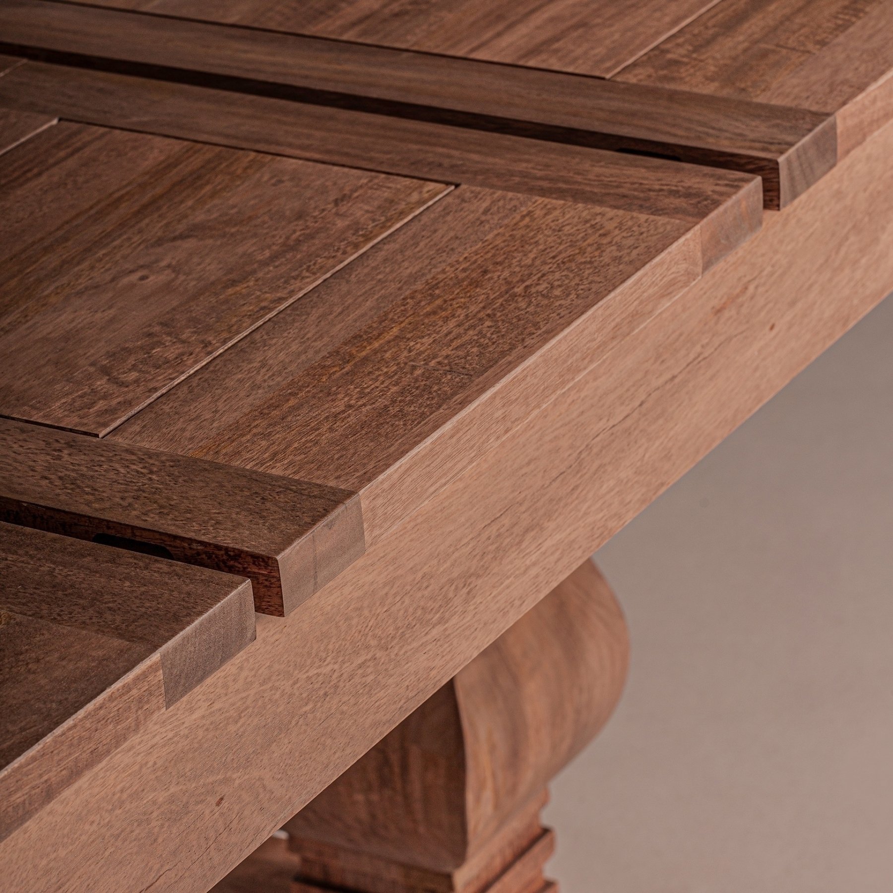 Раздвижной стол Brandet, натурального цвета, в колониальном стиле. Изготовлен из дерева манго. Расширяемый продукт.