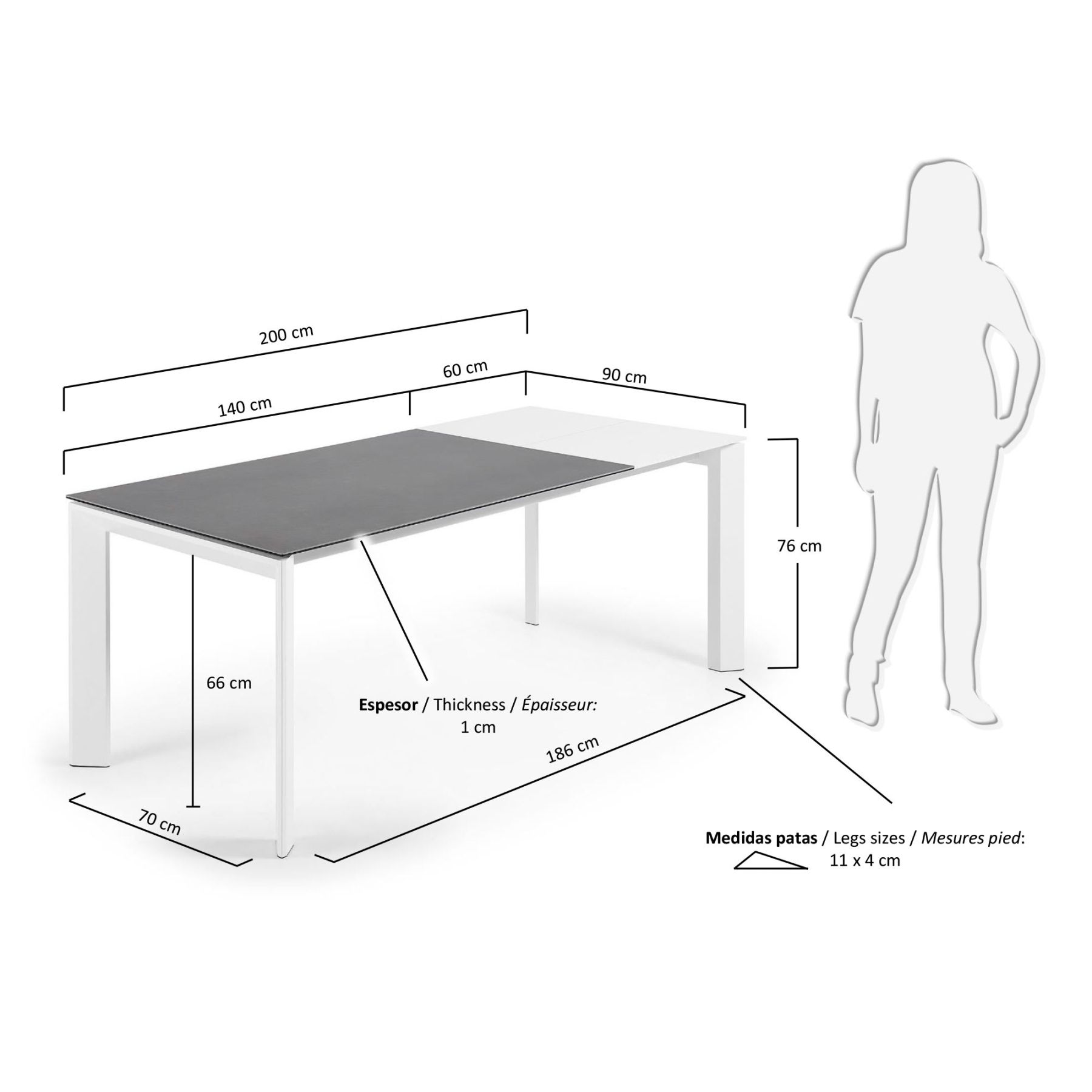 Стол Atta керамический от фабрики La Forma – безупречно спрятанная сложная конструкция в простом минимализме. Стол Atta – это победа инженерной мысли. Так мастерски спрятать выдвижной механизм и замаскировать его под тонкой столешницей смогут только профессионалы. Керамика – точно подобранный материал, который делает изделие эффектным, даже несмотря на принадлежность к минимализму. Стол прямоугольной формы. Столешница толщиной 1 см сделана из ударопрочной керамики графитового или коричневого цвета (для базовых моделей). Данный материал практичный, стойко переносит воздействие высоких температур, легко очищается от загрязнений. Выдвижной механизм находится справа. Чтобы раздвинуть стол, необходимо потянуть за ножки и достать сложенную пополам дополнительную панель (она из МДФ). Раздвижной механизм сделан из нержавеющей стали. Опора выполнена из металла, покрыта серой краской. Благодаря поддержке столешницы по всему периметру, обеспечивается стойкость к высоким весовым нагрузкам, правильное распределение веса. Размеры стола: длина – 120-180 см, 140-200 см или 160-220 см, ширина – 90 см, высота – 76 см.