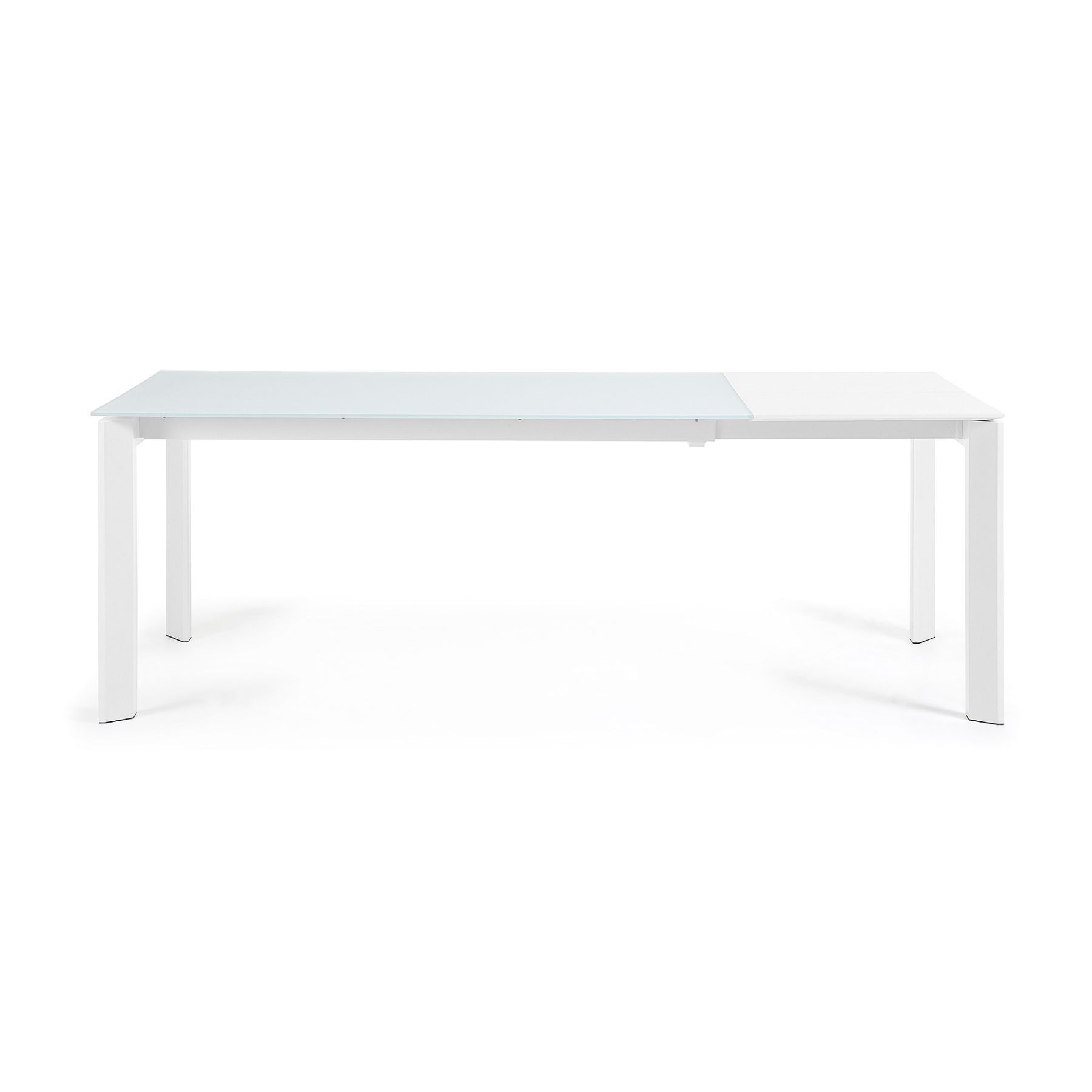 Стол обеденный Atta белое стекло от фабрики La Forma – ослепительная белизна для светлых интерьеров. Стол моментально останавливает на себе взгляд. Кристальная белизна выглядит ярко и эффектно, она буквально завораживает и ослепляет. Такая модель сразу убеждает в своей беспроигрышной роли в современном интерьере. Кроме того, раздвижная столешница – это еще одна особенность, которая не раз будет выручать при гостях. Стол прямоугольной формы. Столешница сделана из ударопрочного стекла толщиной 1 см. Оно покрыто матовой белой краской. Опора имеет раздвижную конструкцию, сделана из металла. Чтобы удлинить стол, следует потянуть за ножки и извлечь дополнительную панель, сложенную вдвое. Далее ее нужно уложить на поперечные внутренние перекладины. Дополнительная панель сделана из прочного МДФ белого цвета. За счет металлического каркаса и широких ножек (11 х 4 см), обеспечивается прочность и надежность конструкции при высоких весовых нагрузках. Размер стола: длина – 120/180, 140/200, 160/ 220 см (зависит от выбранной модели), ширина – 80 или 90 см, высота – 76 см. Максимальная посадка – 10 человек. Стол потребуется собрать самостоятельно. Инструкция и крепеж входят в комплектацию.
