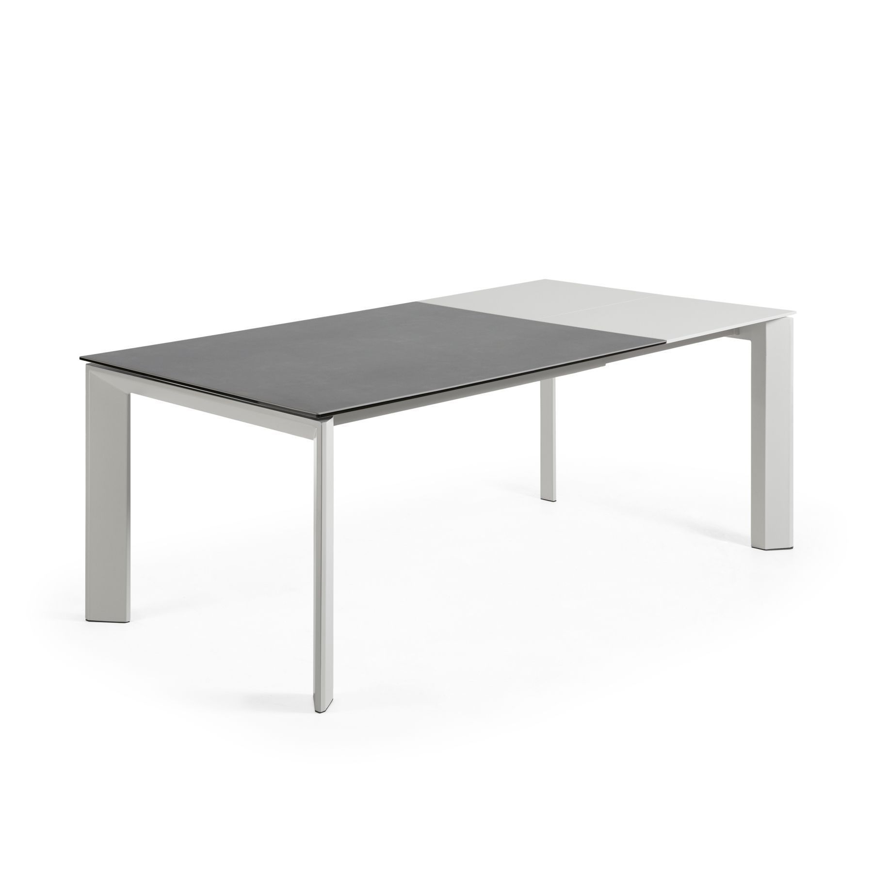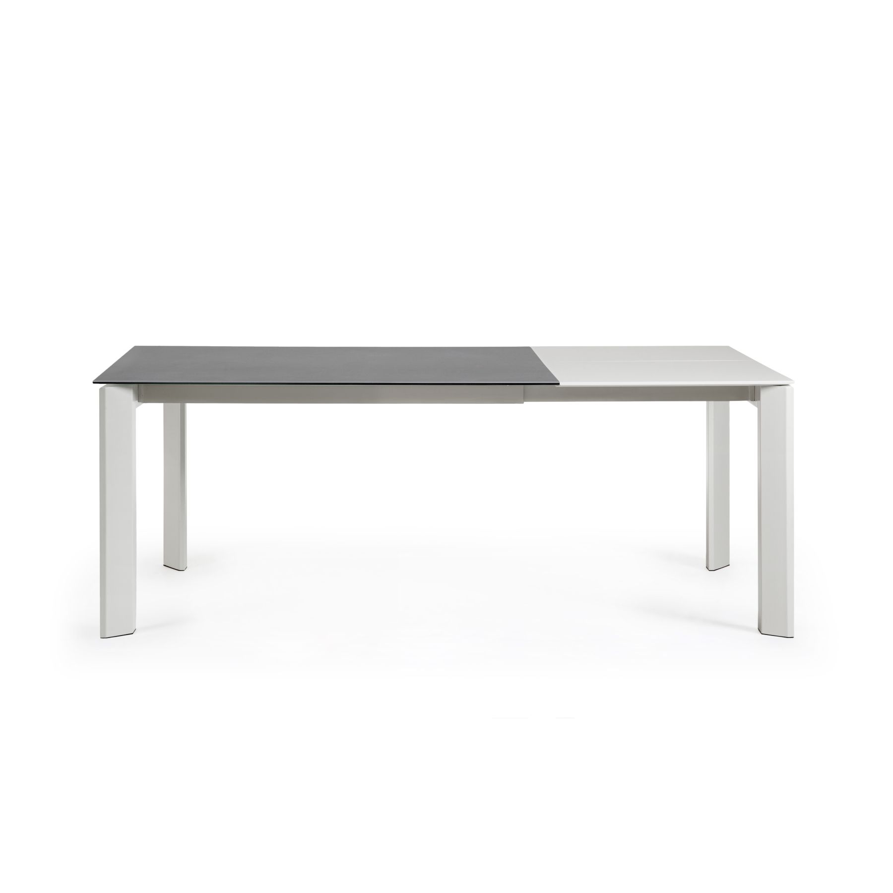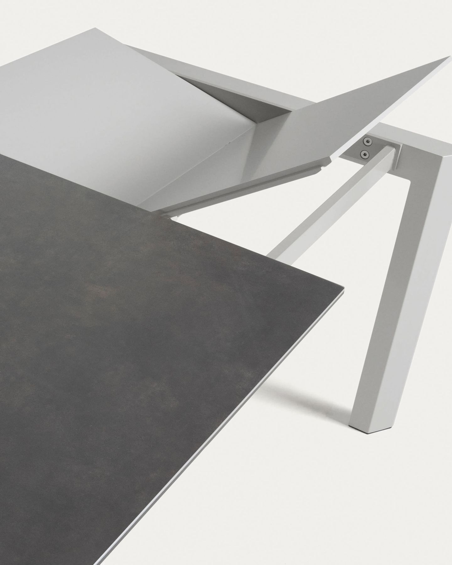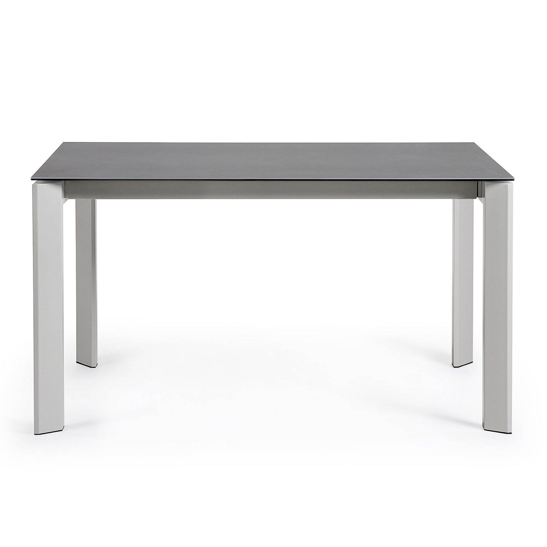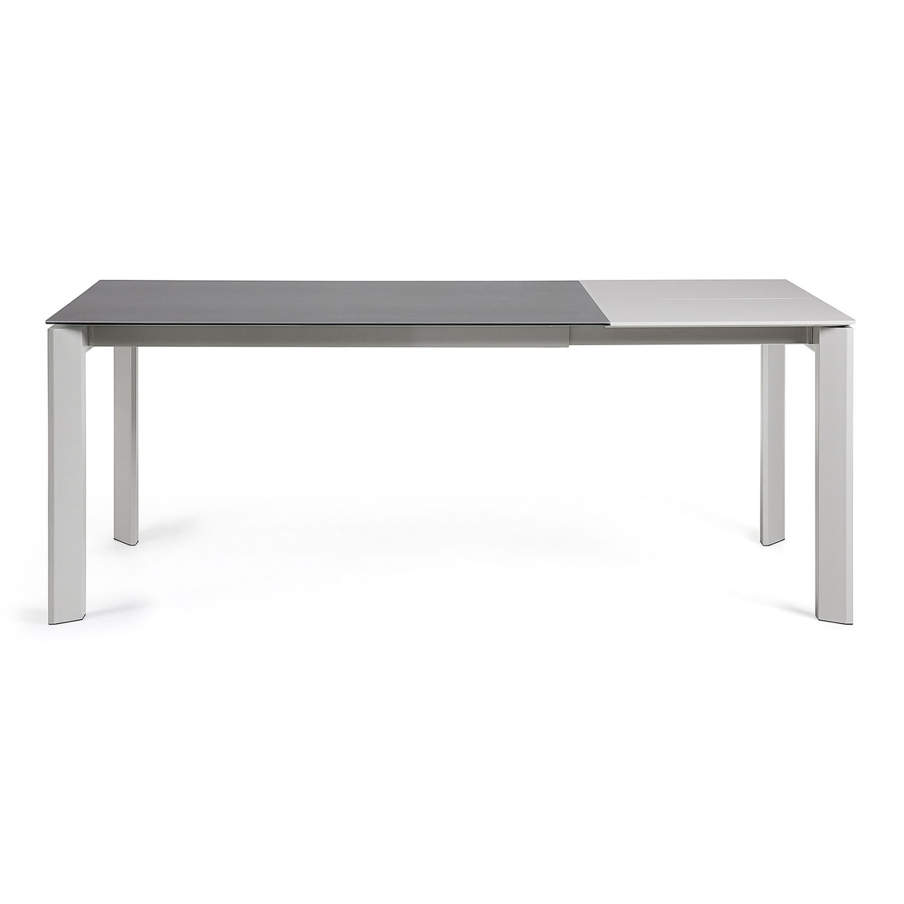Стол Atta серый керамический от фабрики La Forma – безупречно спрятанная сложная конструкция в простом минимализме. Стол Atta – это победа инженерной мысли. Так мастерски спрятать выдвижной механизм и замаскировать его под тонкой столешницей смогут только профессионалы. Керамика – точно подобранный материал, который делает изделие эффектным, даже несмотря на принадлежность к минимализму. Стол прямоугольной формы. Столешница толщиной 1 см сделана из ударопрочной керамики графитового или коричневого цвета (для базовых моделей). Данный материал практичный, стойко переносит воздействие высоких температур, легко очищается от загрязнений. Выдвижной механизм находится справа. Чтобы раздвинуть стол, необходимо потянуть за ножки и достать сложенную пополам дополнительную панель (она из МДФ). Раздвижной механизм сделан из нержавеющей стали. Опора выполнена из металла, покрыта серой краской. Благодаря поддержке столешницы по всему периметру, обеспечивается стойкость к высоким весовым нагрузкам, правильное распределение веса. Размеры стола: длина – 120-180 см, 140-200 см или 160-220 см, ширина – 90 см, высота – 76 см.