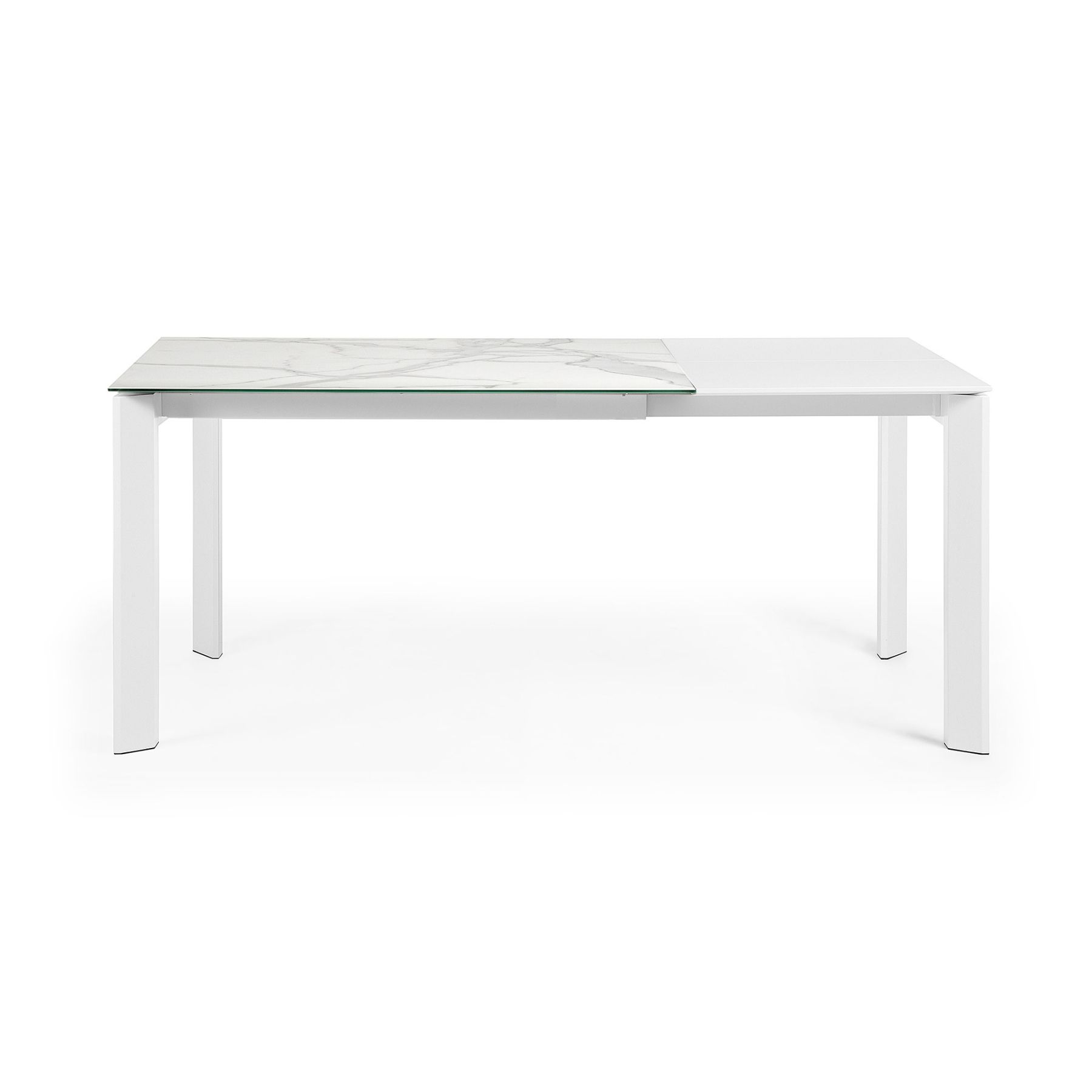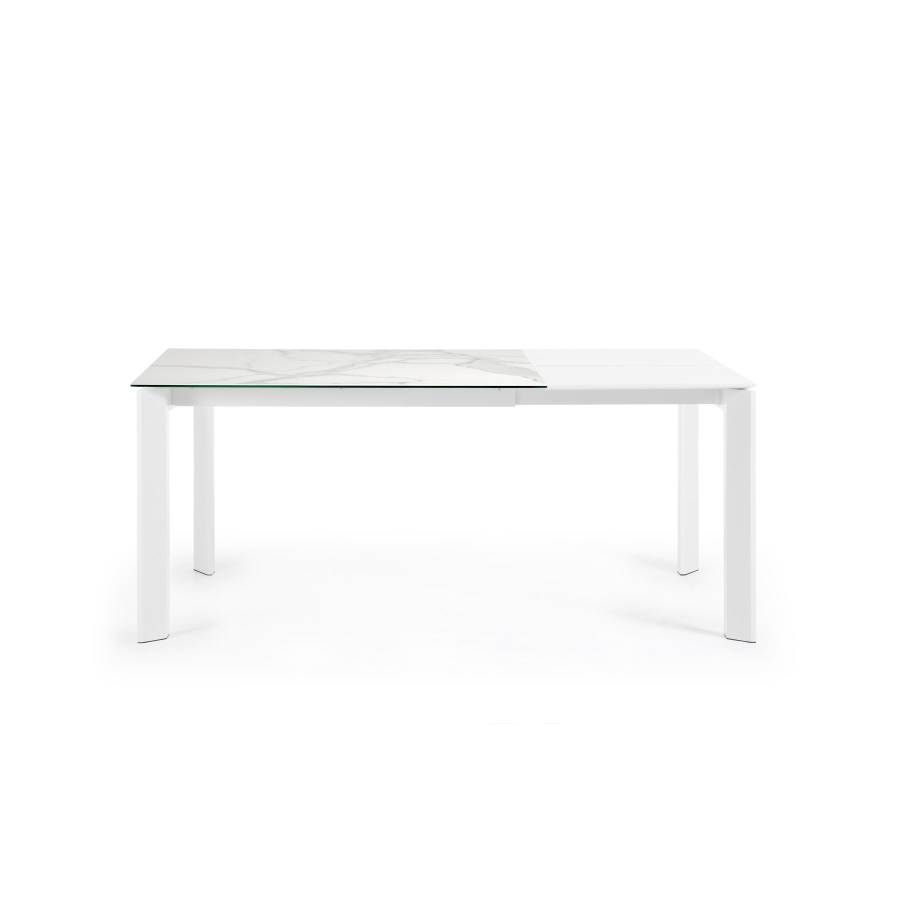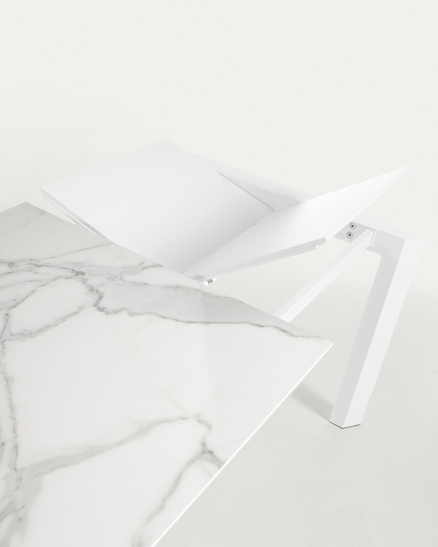 Раздвижной обеденный стол со стальной основой, окрашенной эпоксидной смолой, и столешницей из высокотехнологичной керамической плиты со стеклянной опорой. Отделка Vulcano Ceniza. Максимальная длина 180 см.