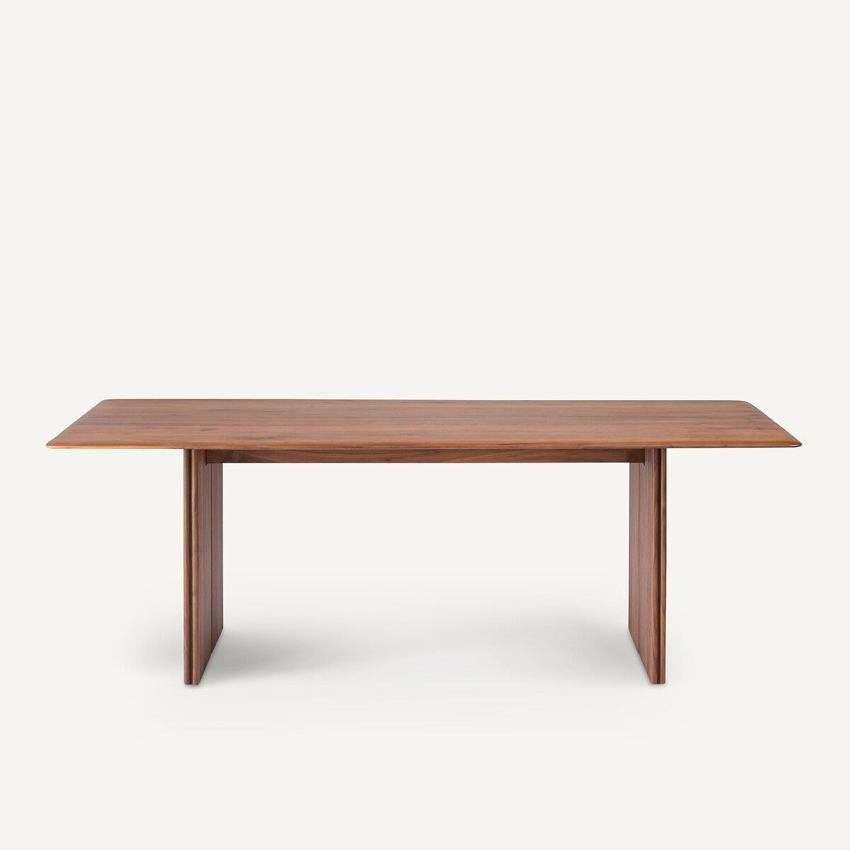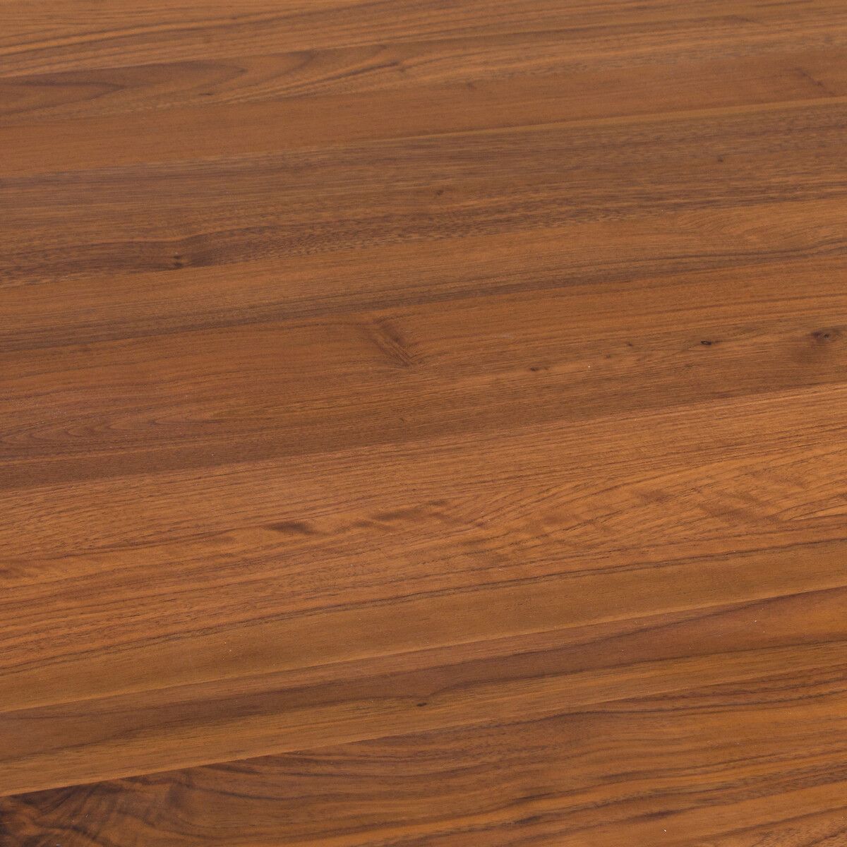 — Столешница из массива орехового дерева FSC®, скошенные грани, форма в стиле крыла самолета, ПУ-отделка.