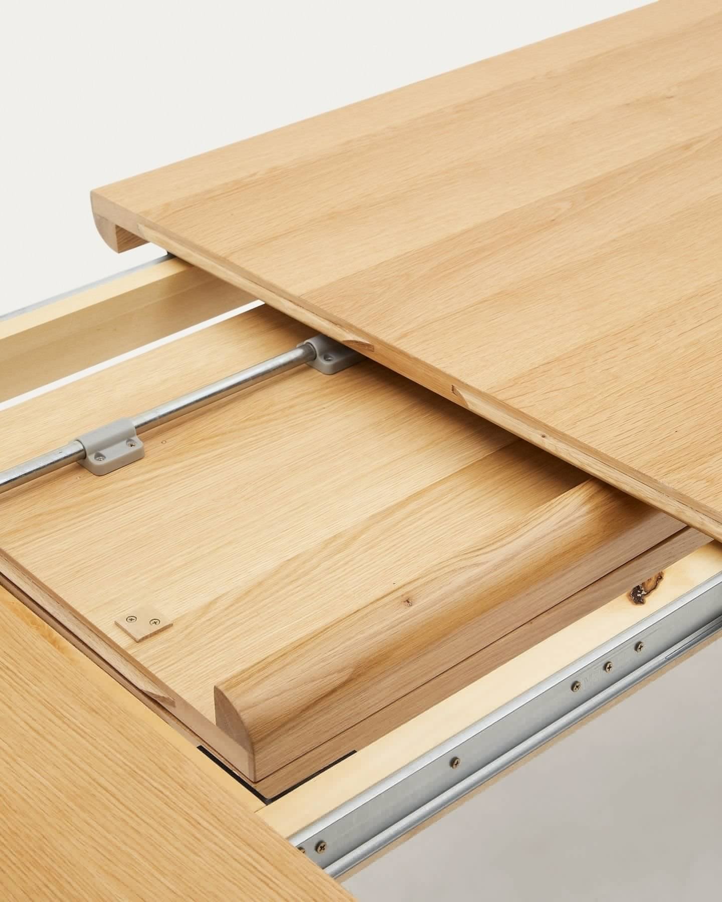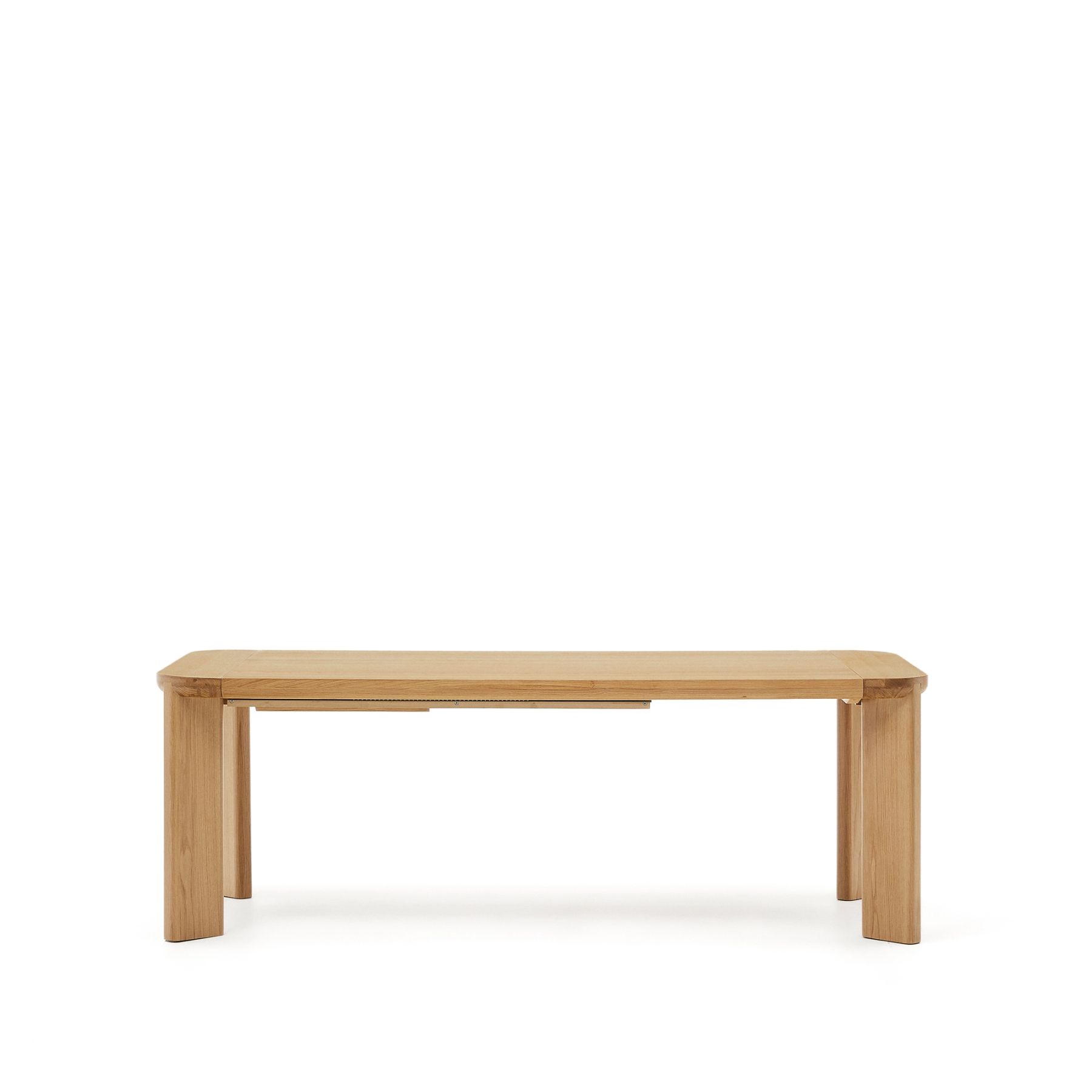Максимально используйте пространство столовой с помощью раздвижного стола Jondal, большого предмета мебели, идеально подходящего для трапезы с гостями. Дизайн Kave Home из дуба придает элегантность и комфорт благодаря наклонным ножкам.