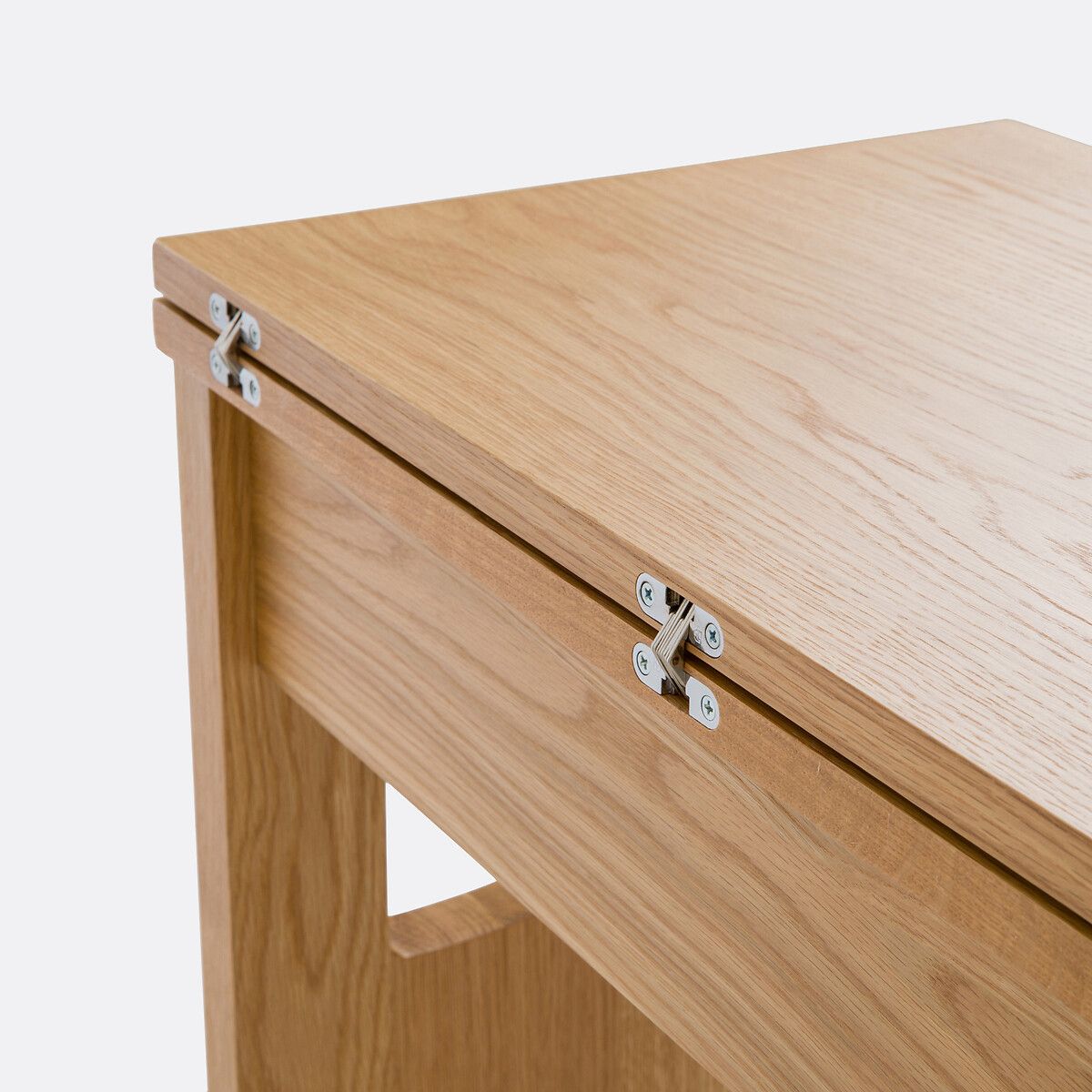 Столешница и ножки выполнены из МДФ с покрытием шпона светлого дуба.