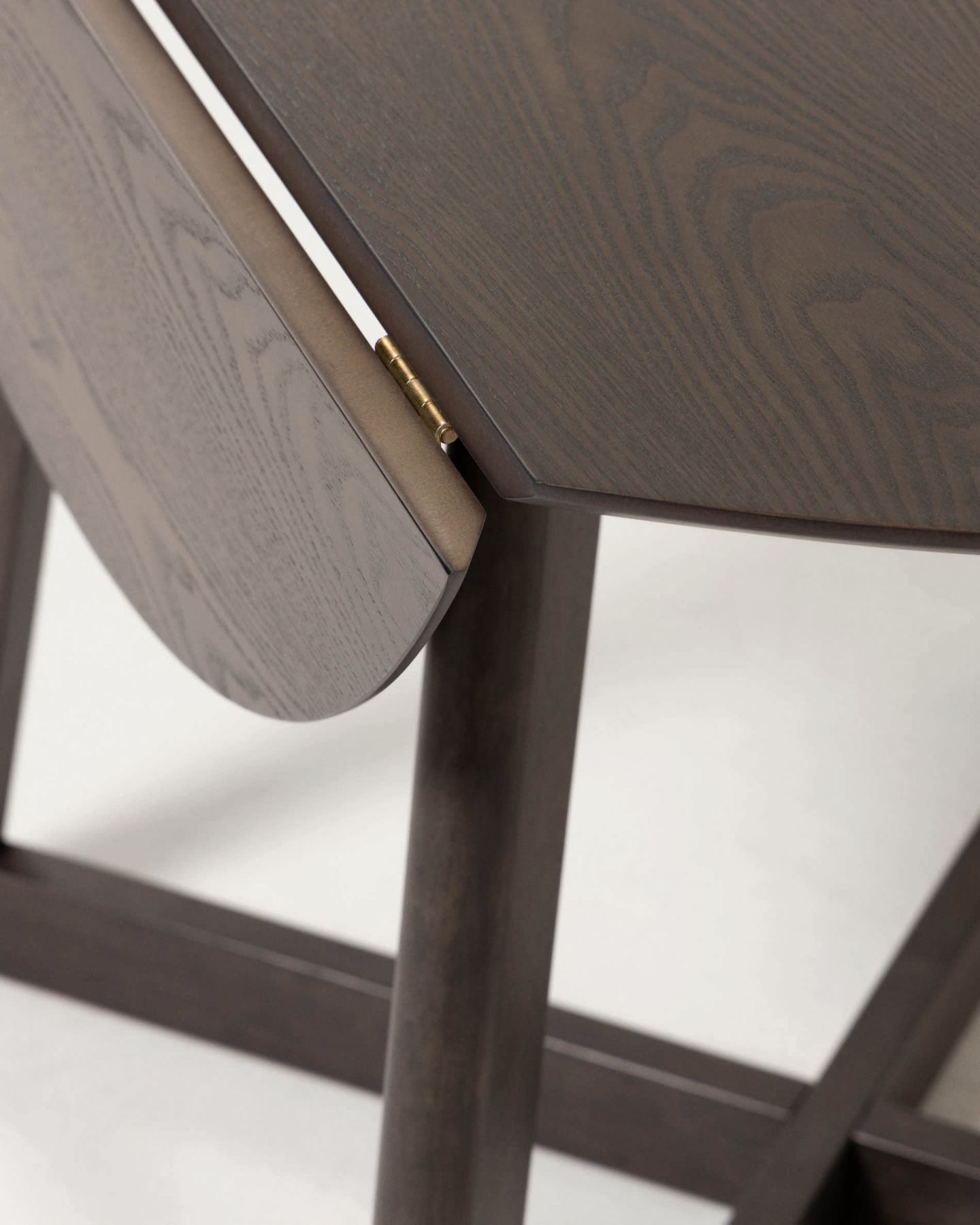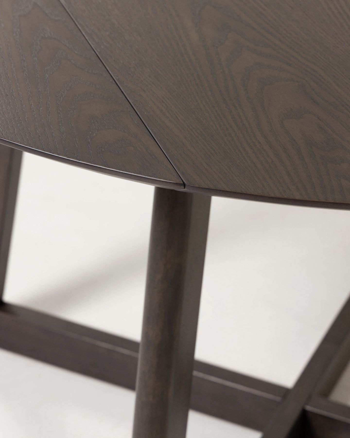 Стол круглый Maryse 120x75cm от фабрики La Forma – когда сам выбираешь конфигурацию и количество посадочных мест. Круглый стол Maryse вызывает бурю восторженных эмоций, как только узнаешь, что перед тобой настоящий трансформер. Столешнице легко можно придать другую форму, опустив один или сразу два сектора. Так можно менять не только конфигурацию и площадь изделия, но и управлять количеством посадочных мест. В полностью разложенном виде стол имеет круглую форму. Столешница выполнена из шпона ясеня. Она состоит из трех частей, снизу соединенных между собой металлическими дверными петлями. Опора сделана из массива каучукового дерева – прочной породы, способной выдерживать высокие нагрузки (максимально допустимая – 80 кг). Она состоит из двух рамочных конструкций, проходящих сквозь друг друга крест-накрест. Чтобы разложить стол, нужно поднять сектор и подпереть его снизу двумя деревянными брусками. Максимальная посадка составляет 6 человек. Размеры стола: длина – 70-120 см, ширина – 120 см, высота – 75 см. Вес – 25 кг. Опоры поставляются отдельно. Для самостоятельной сборки в комплектацию включен крепеж, инструкция.