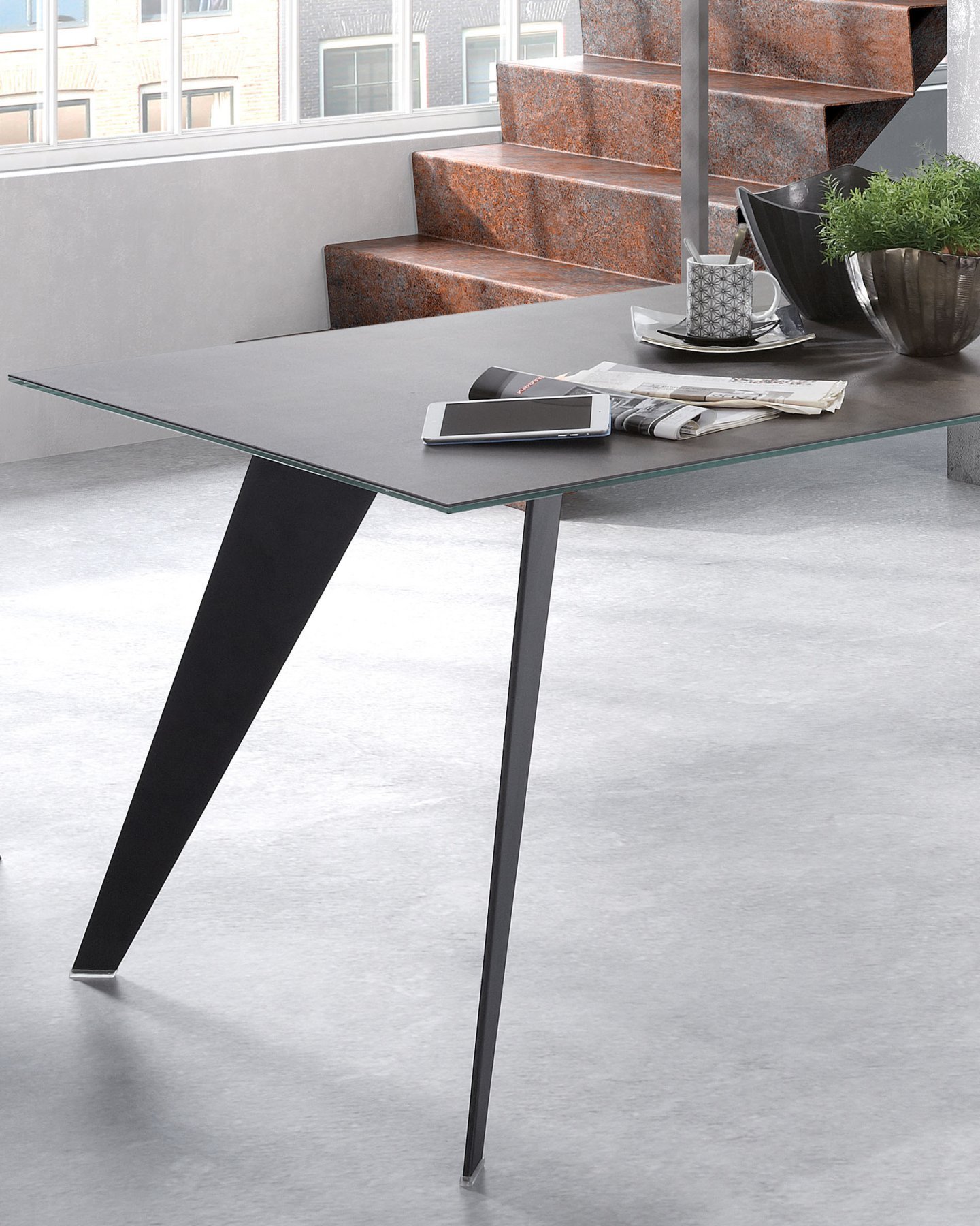 Стол Nack с первого взгляда убеждает в своей надежности и прочности. Его металлическая конструкция – главное доказательство этому. Керамическое покрытие радует не меньше. Это тренд в современной мебели, который помимо визуальной составляющей радует еще и своей простотой в уходе. А стильные треугольные ножки – весомый бонус, выводящий дизайн изделия за рамки обычных.