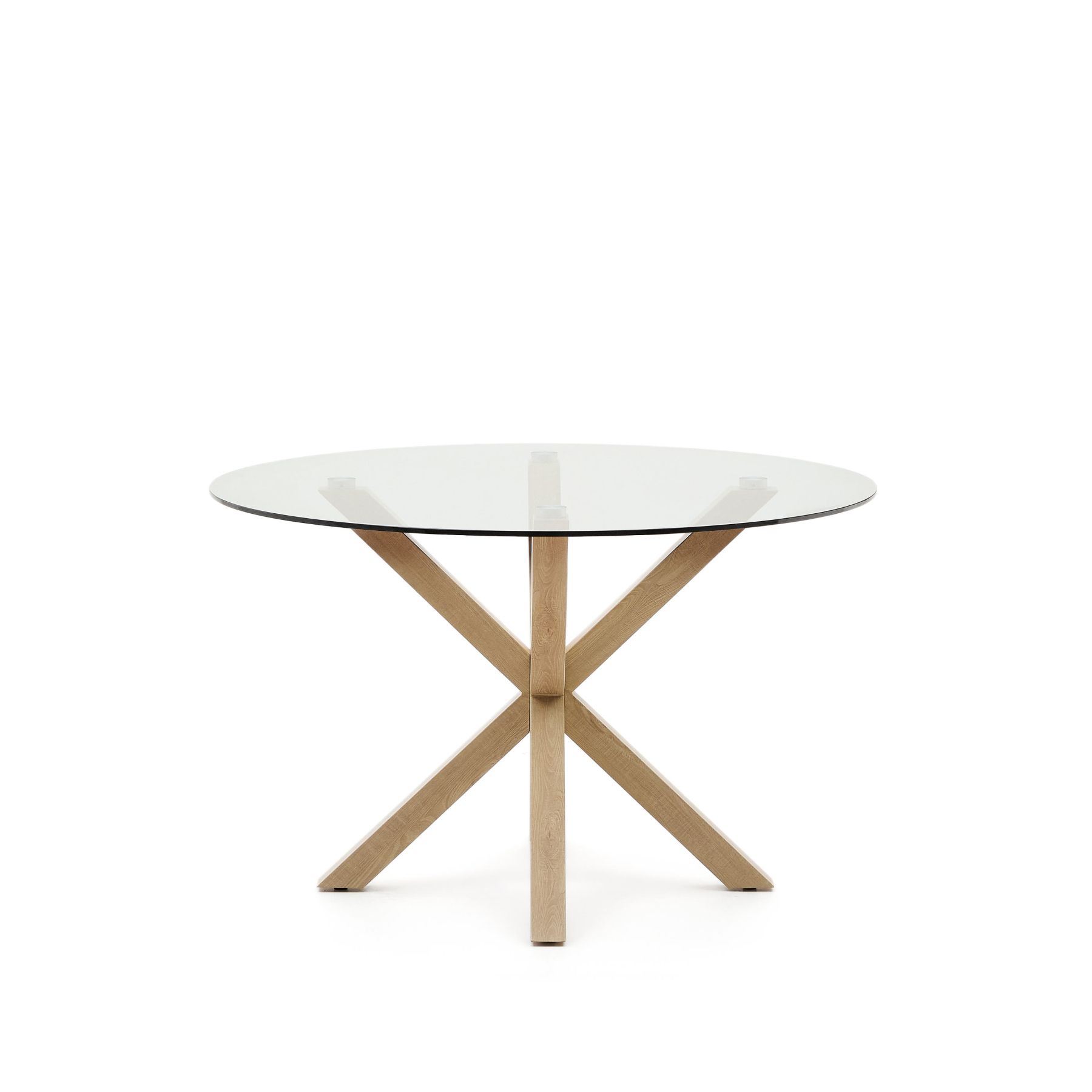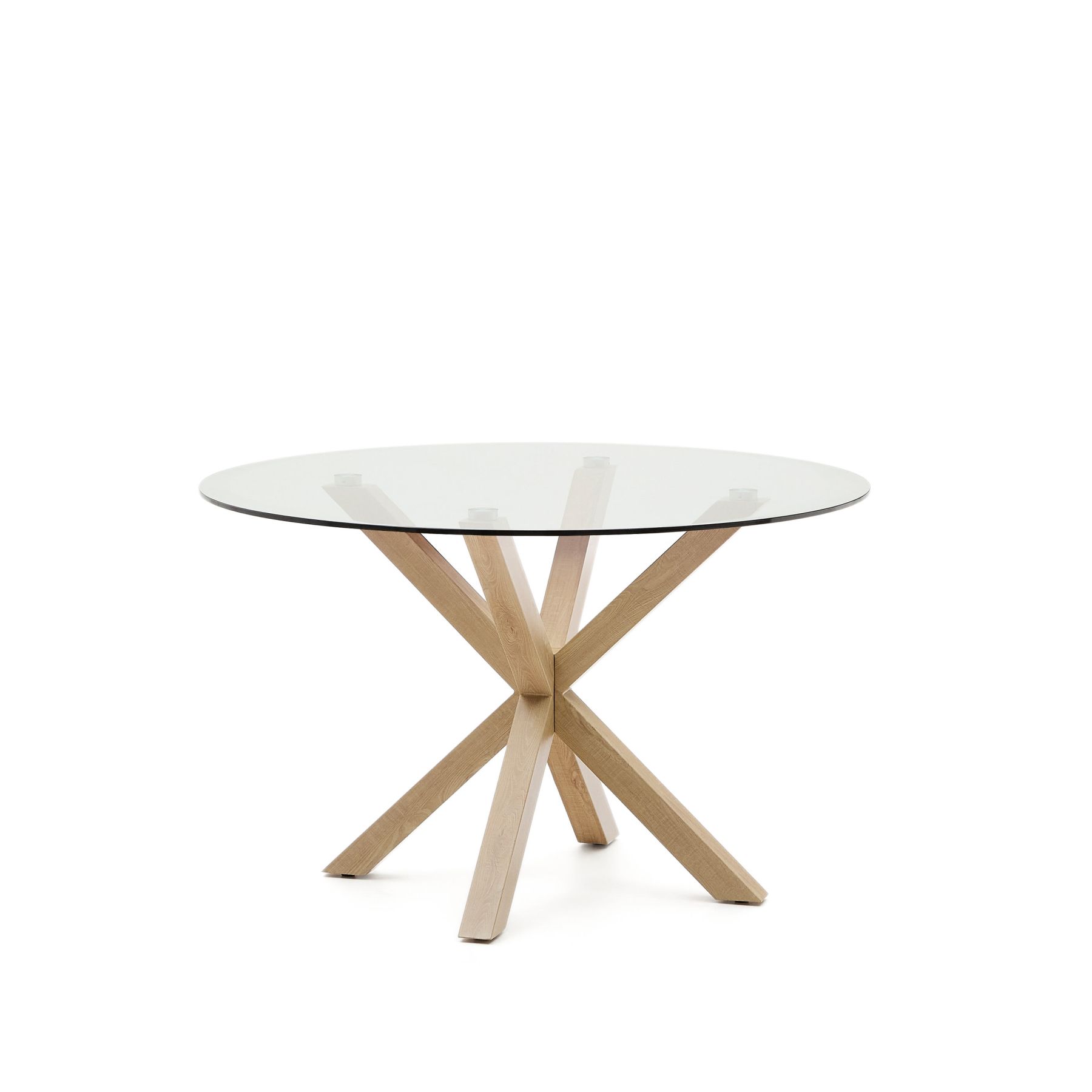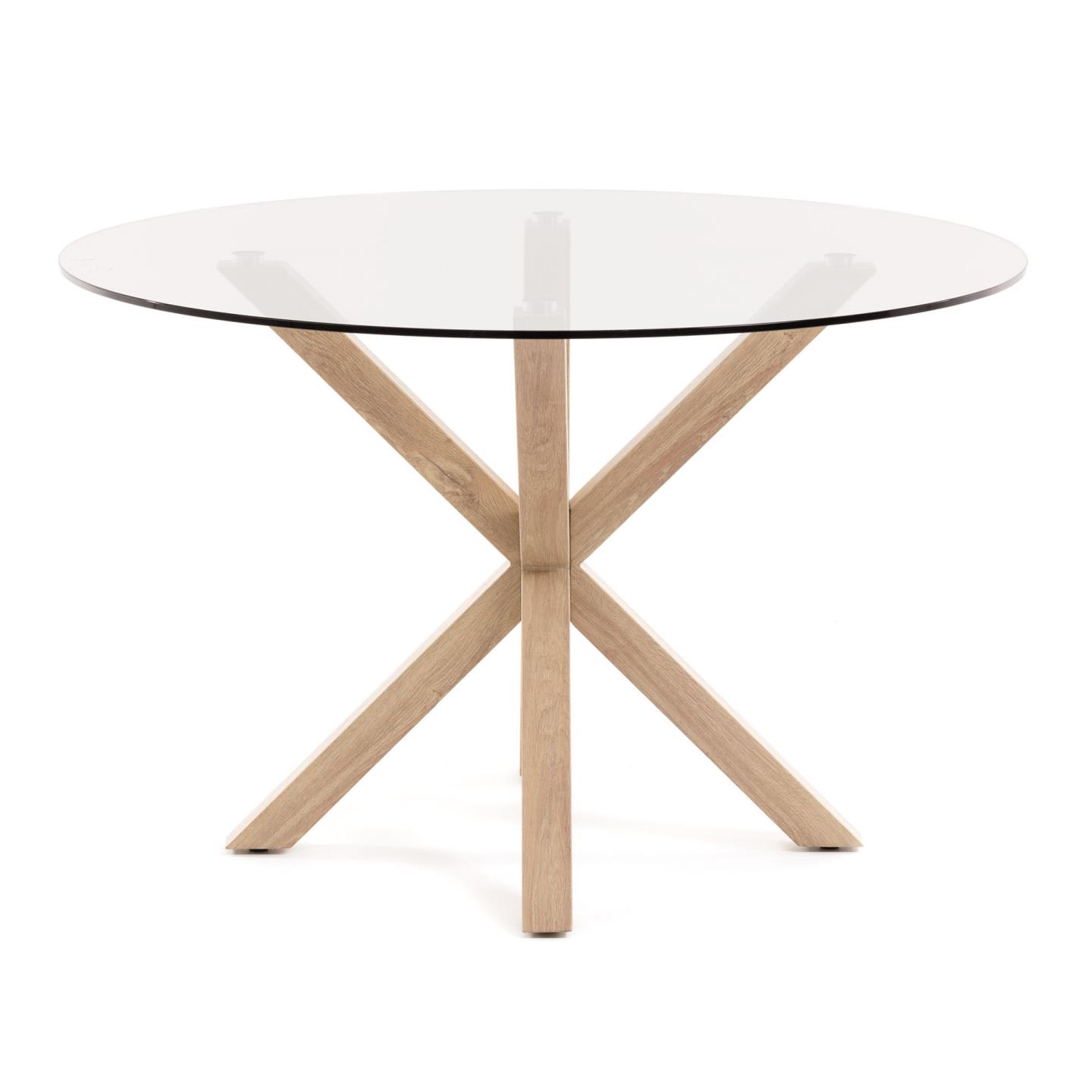Стол Arya от фабрики La Forma (ex Julia Grup) – стильная стеклянная столешница и металлические ножки, оформленные под дерево. Стол Arya – это отличительный дизайн, в основе которого неожиданная имитация металла под дерево и оригинальная конструкция опоры. Такой предмет эффектно выделит пространство и подчеркнет вкус владельца. Быть в тренде и жить бок о бок с самыми свежими идеями городского минимализма – вот что значит стол Arya! Стол имеет сборную конструкцию, которая состоит из круглой стеклянной столешницы и металлической опоры. Столешница прозрачная, ударопрочная. Ее толщина – 1 см. Опора представляет собой симметричную конструкцию, собранную из четырех прямоугольных ножек с гранями по 6 см. Поверхность имитирована под буковое дерево, покрыта защитой от влаги и загрязнений. На каждой ножке есть пластиковый наконечник, который защищает напольное покрытие от повреждений. Максимально допустимая нагрузка на стол не должна превышать 50 кг. Вместимость – 6 человек. Размеры: ширина столешницы – 119 см, ширина опоры – 81 см, высота – 76 см. Вес – 38,7 кг. Потребуется небольшая сборка. Инструкция и крепеж входят в комплектацию. В коллекцию Arya включены аналогичные круглые и прямоугольные деревянные столы с ножками из разных материалов. Конструкция опоры у всех моделей одинаковая.